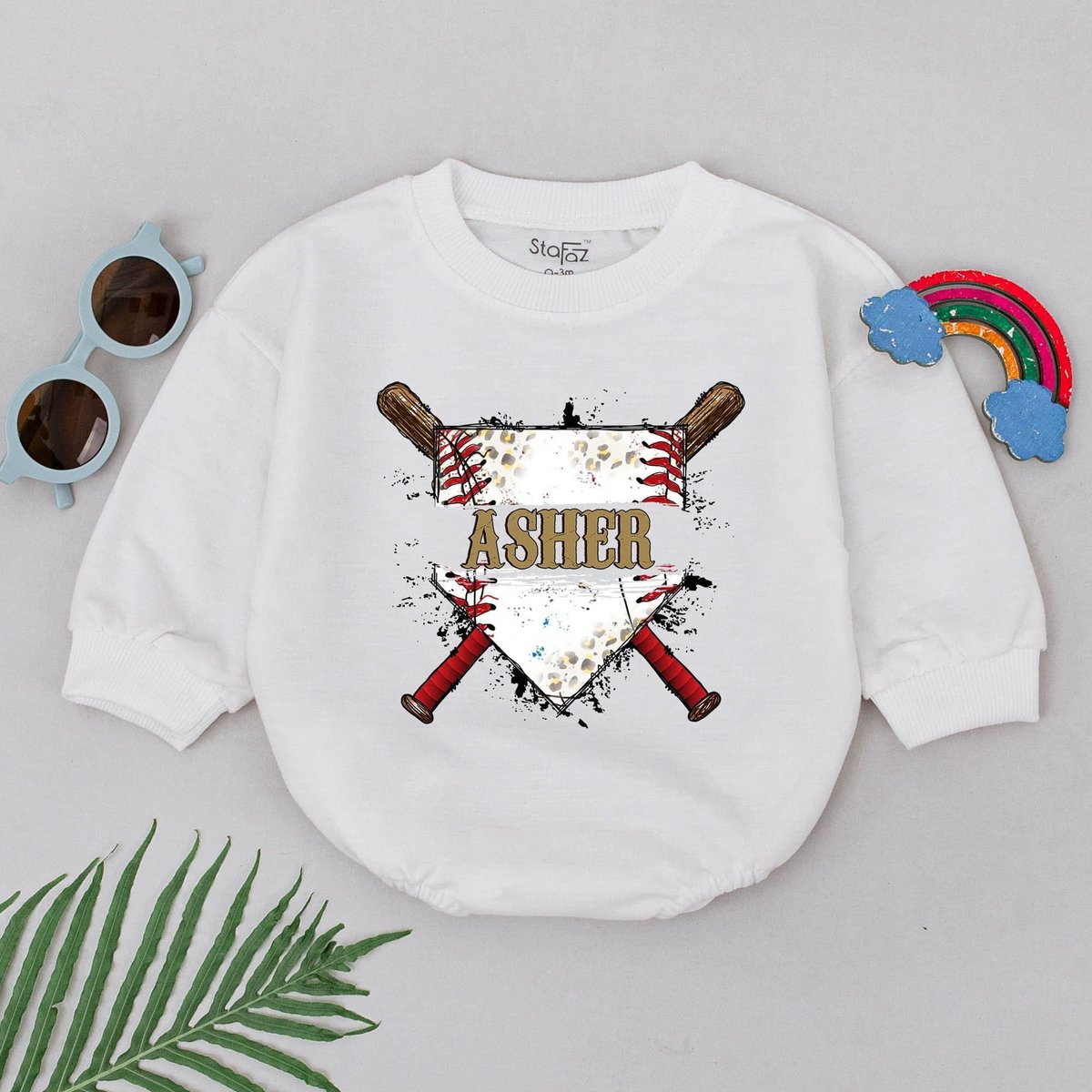 Personalized Game Day Baseball Romper Retro Baseball Baby Outfits Gameday Season Natural Bubble Baby