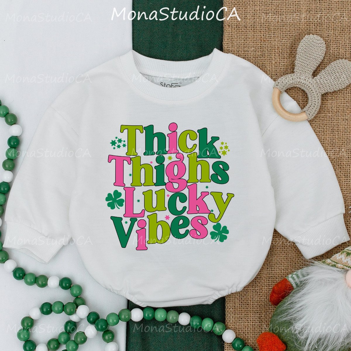 Thick Thighs Lucky Vibes Baby Romper St. Patrick’s Day Shamrock Baby Clothes Baby Shower Gift 1st P