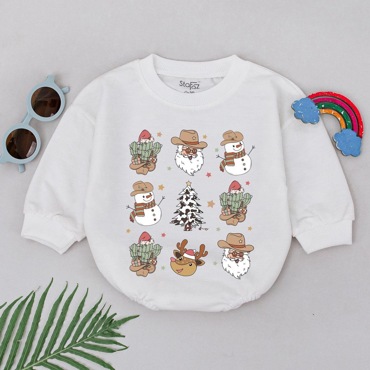 Retro Western Christmas Romper 1st Christmas Baby Romper Christmas Xmas Clothes Baby Shower Newborn