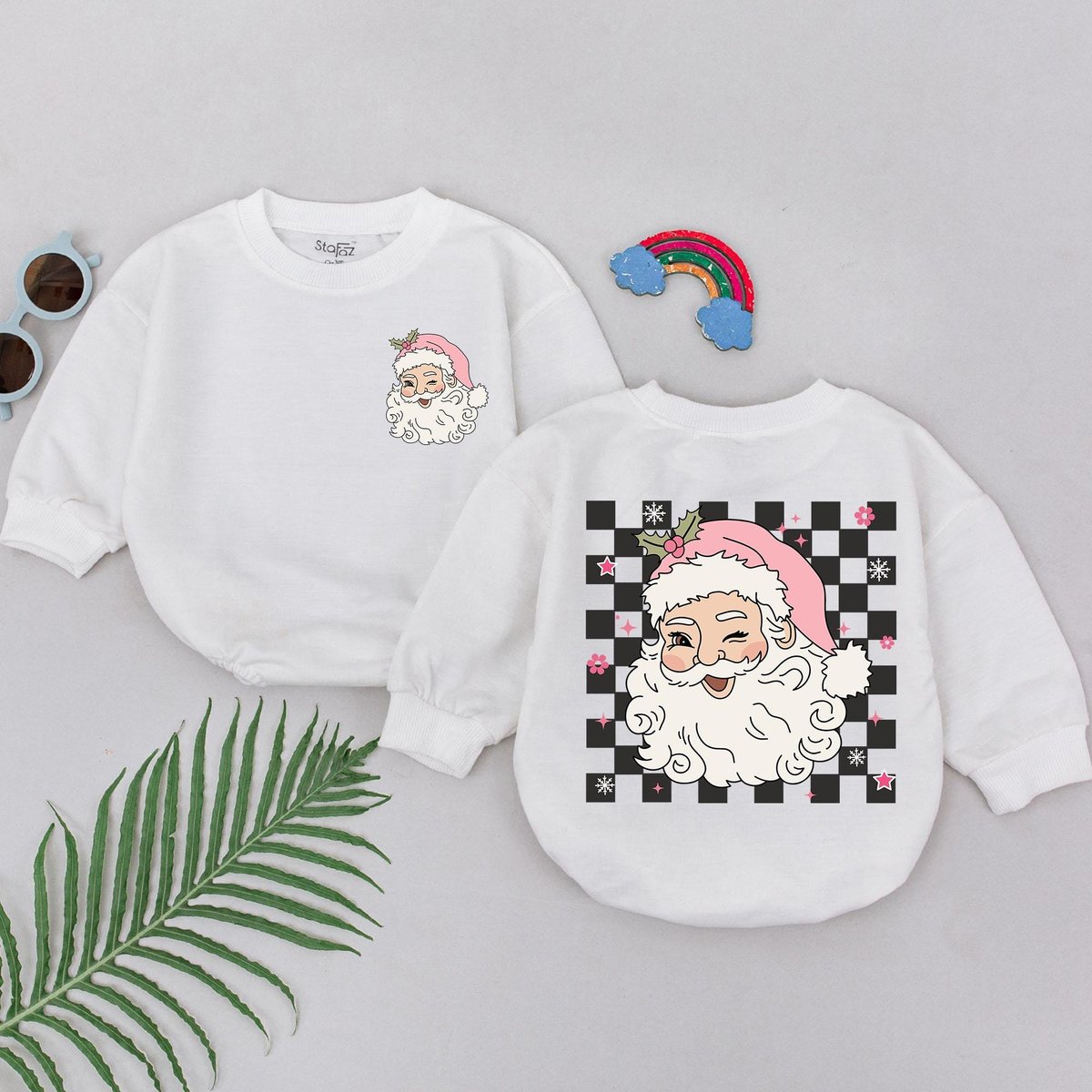 Retro Pink Santa Claus Romper 1st Christmas Santa Romper Baby Shower Gift Christmas Outfit Newborn f