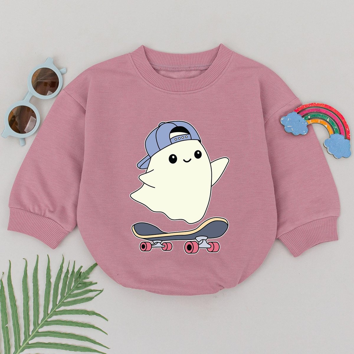 Retro Skateboard Ghost Halloween Romper Ghost Skateboard Bodysuit Sport Ghost 1st Halloween Romper B
