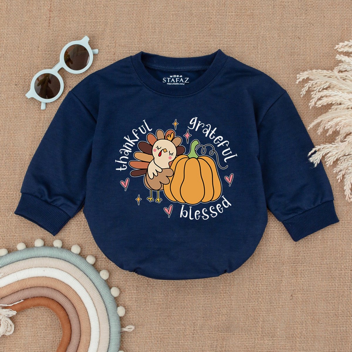 Thankful Grateful Blessed Turkey Baby Outfit Pumpkin Bubble Romper Baby Thanksgiving Clothes Fall Ba 174