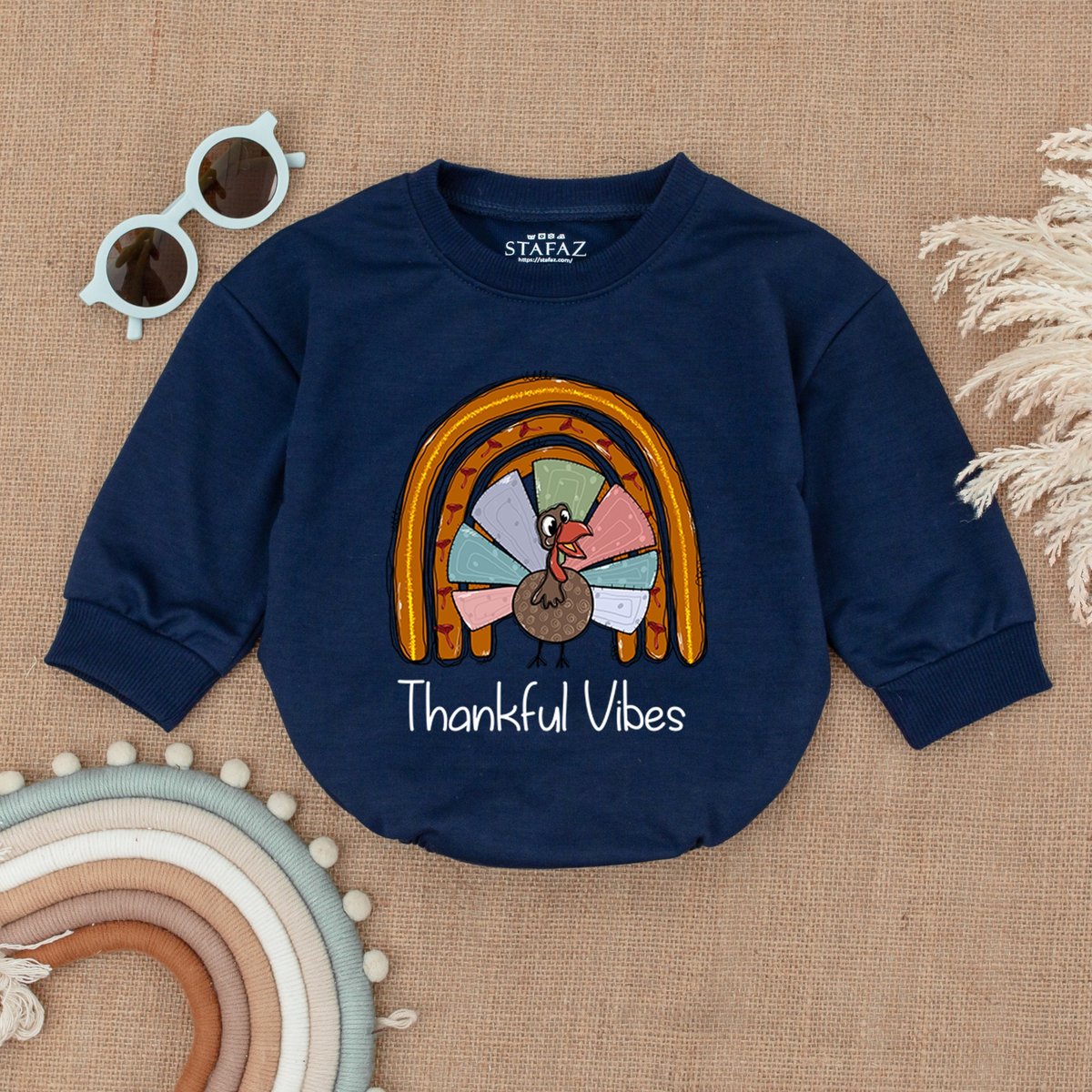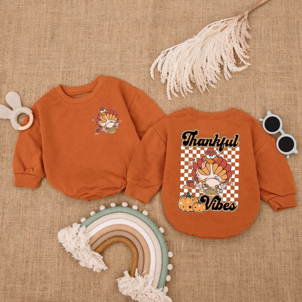 Thankful Vibes Bubble Romper Thanksgiving Baby Outfit Groovy Turkeys Romper Fall Baby Outfit Autumn 176