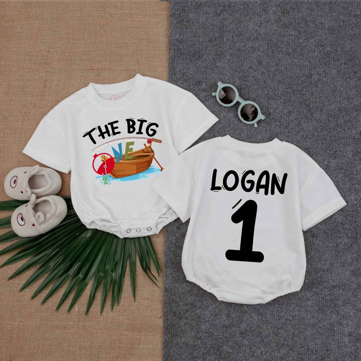 The big one Personalized Birthday Boy Romper First Birthday Outfit Ocean Theme Birthday Shirt Cupcak 188