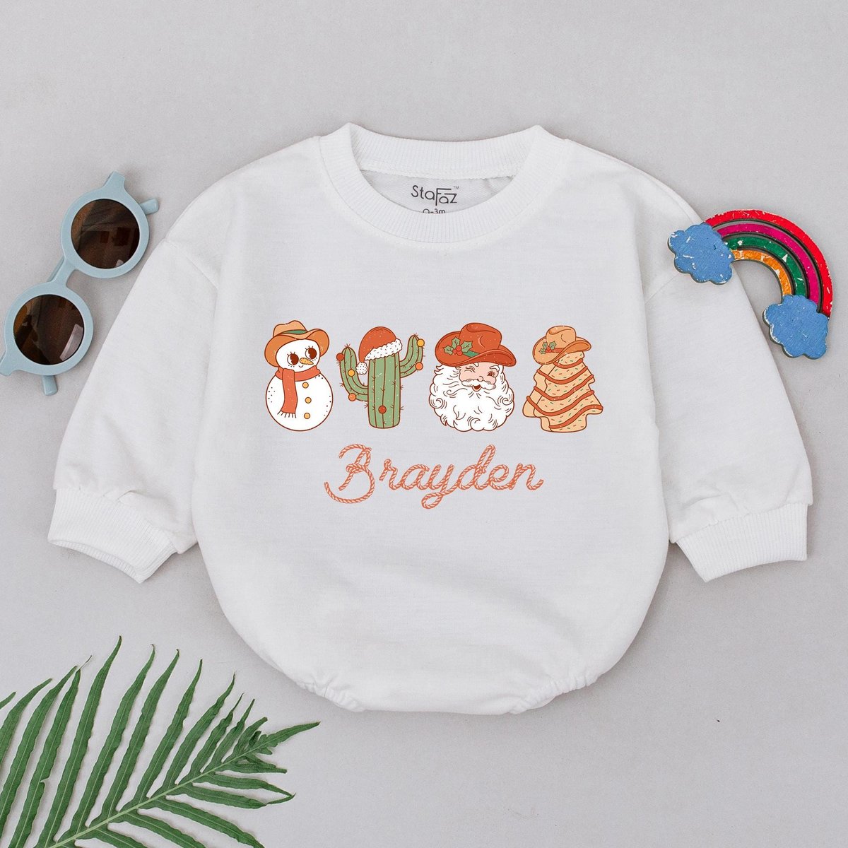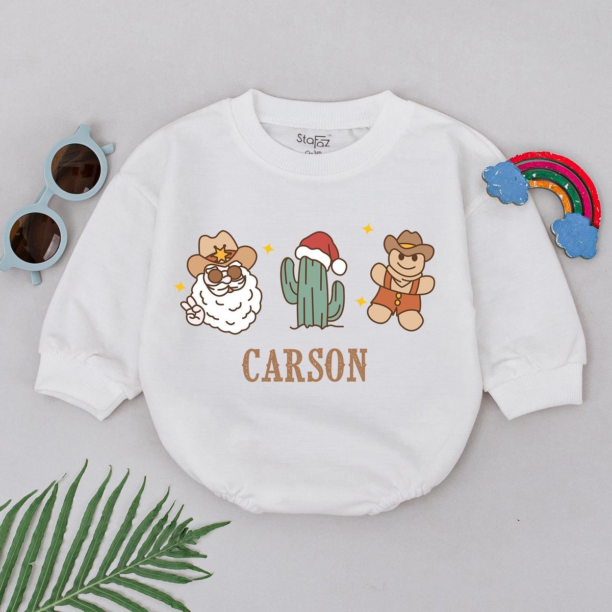 Personalized Western Christmas Romper 1st Christmas Bodysuit Christmas Outfits Baby Xmas Gift Baby S