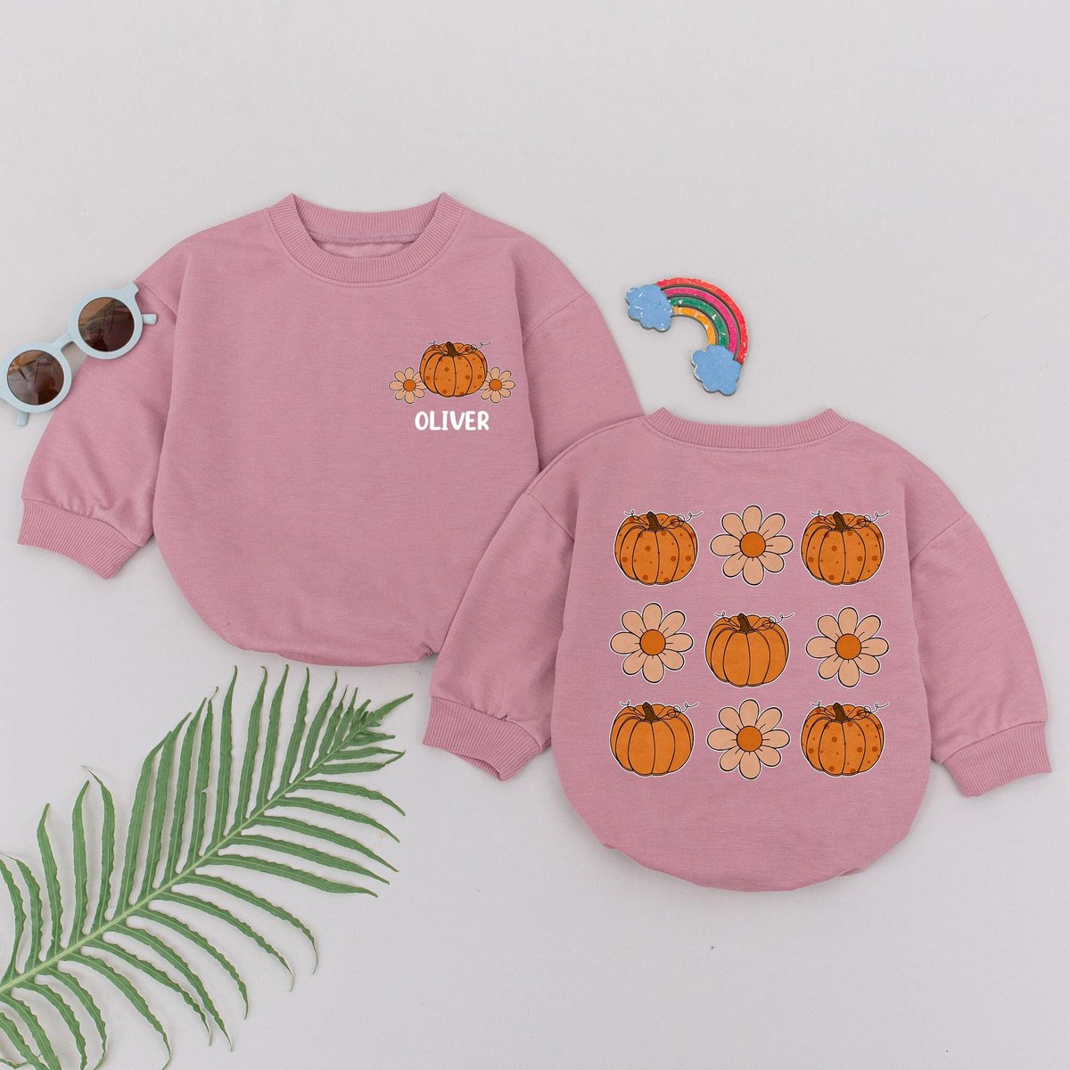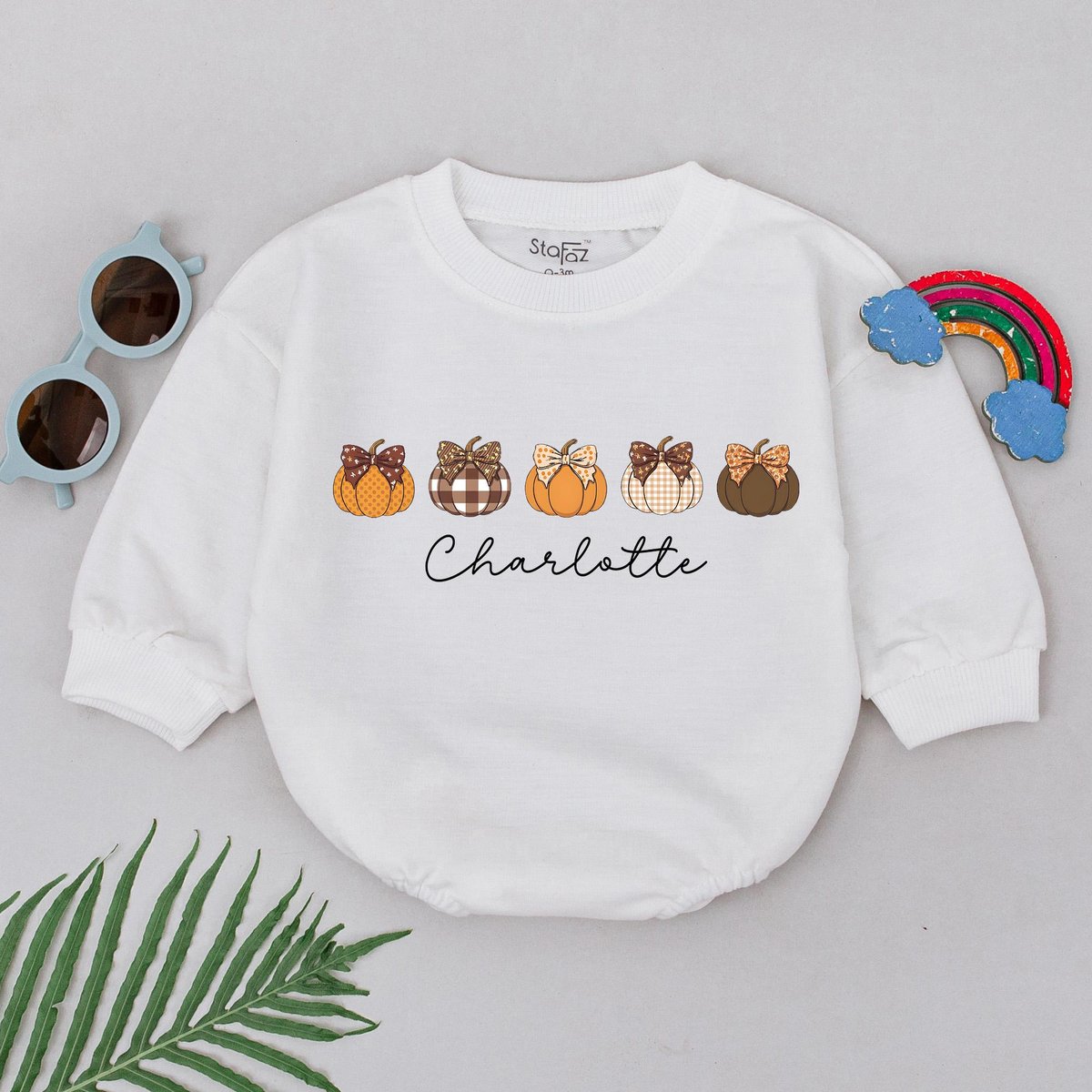 Personalized Retro Pumpkin Romper Custom Name Fall Outfits Baby Shower Gift Pumpkin Spice Outfit New