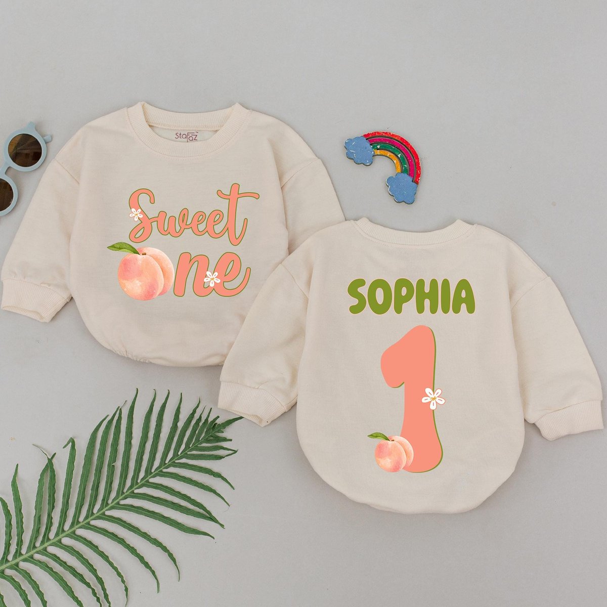 Personalized One Sweet Peach Romper Peach 1s Birthday Bodysuit For Girl Fruit Theme Baby Shower Gift