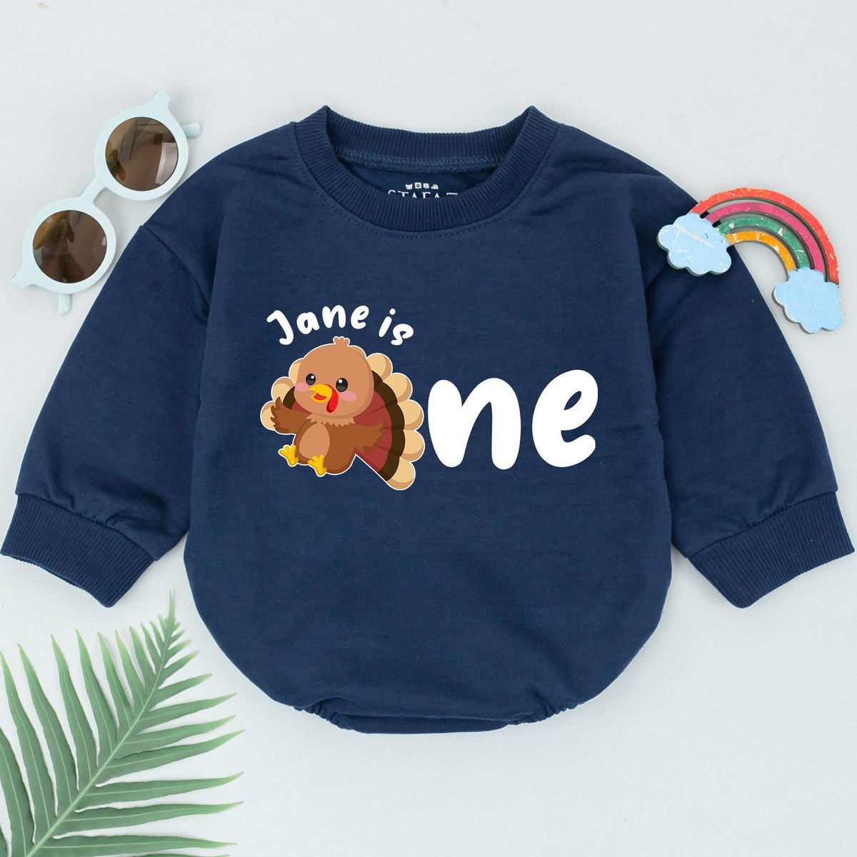 Personalized One Little Turkey Romper Turkey Baby Romper 1st Birthday Thanksgiving Outfit First Than