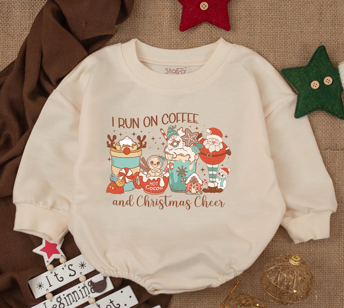 Coffee Christmas Romper Funny Christmas Baby Outfit Bubble Romper 1st Christmas Merry Christmas Vibe 158