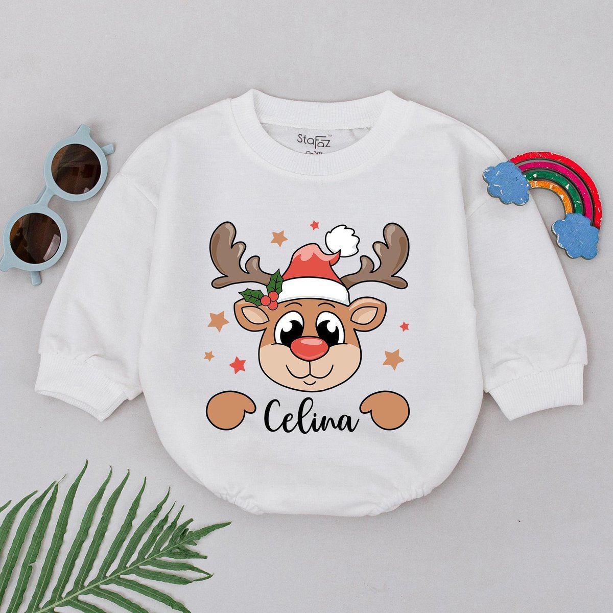 Personalized Name Reindeer Romper 1st Christmas Reindeer Baby Romper Baby Shower Gift Christmas Outf