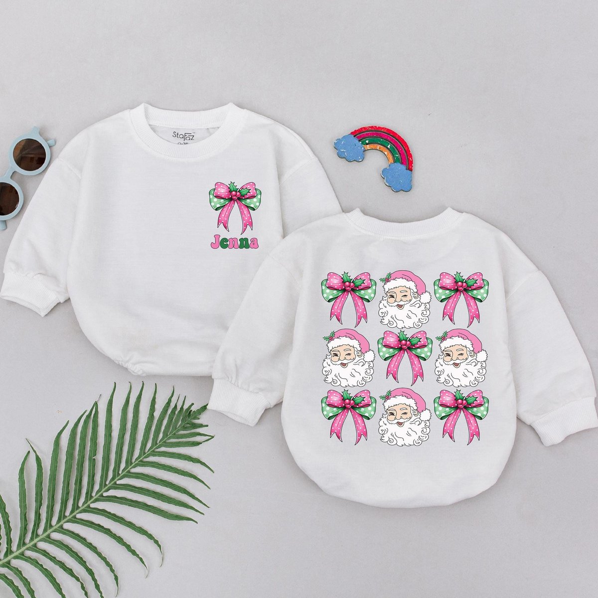 Personalized Name Christmas Romper 1st Christmas Santa Bow Romper Baby Shower Gift Christmas Outfits