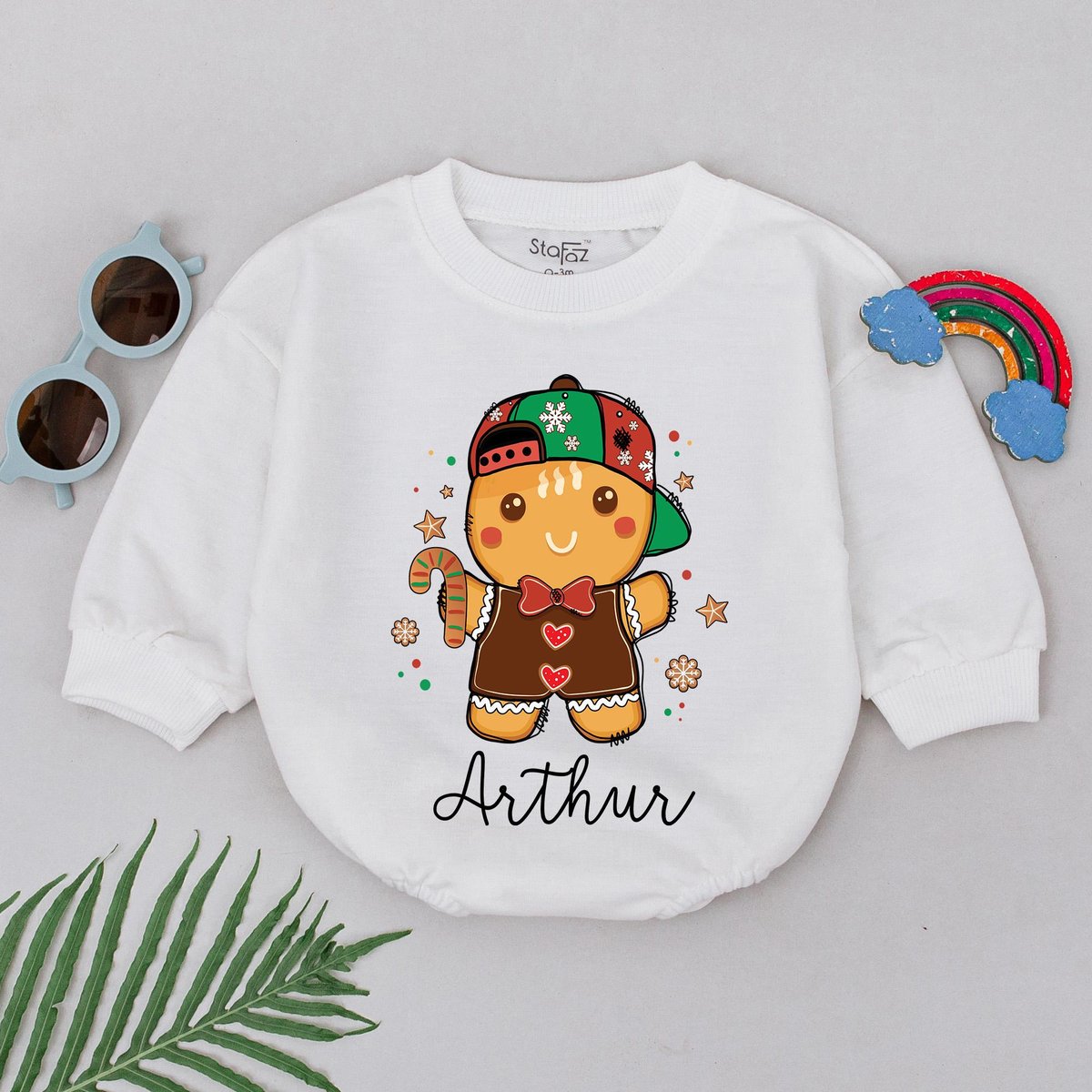 Personalized Name Christmas Romper Gingerbread Christmas Outfits 1st Christmas Romper New Baby Gift