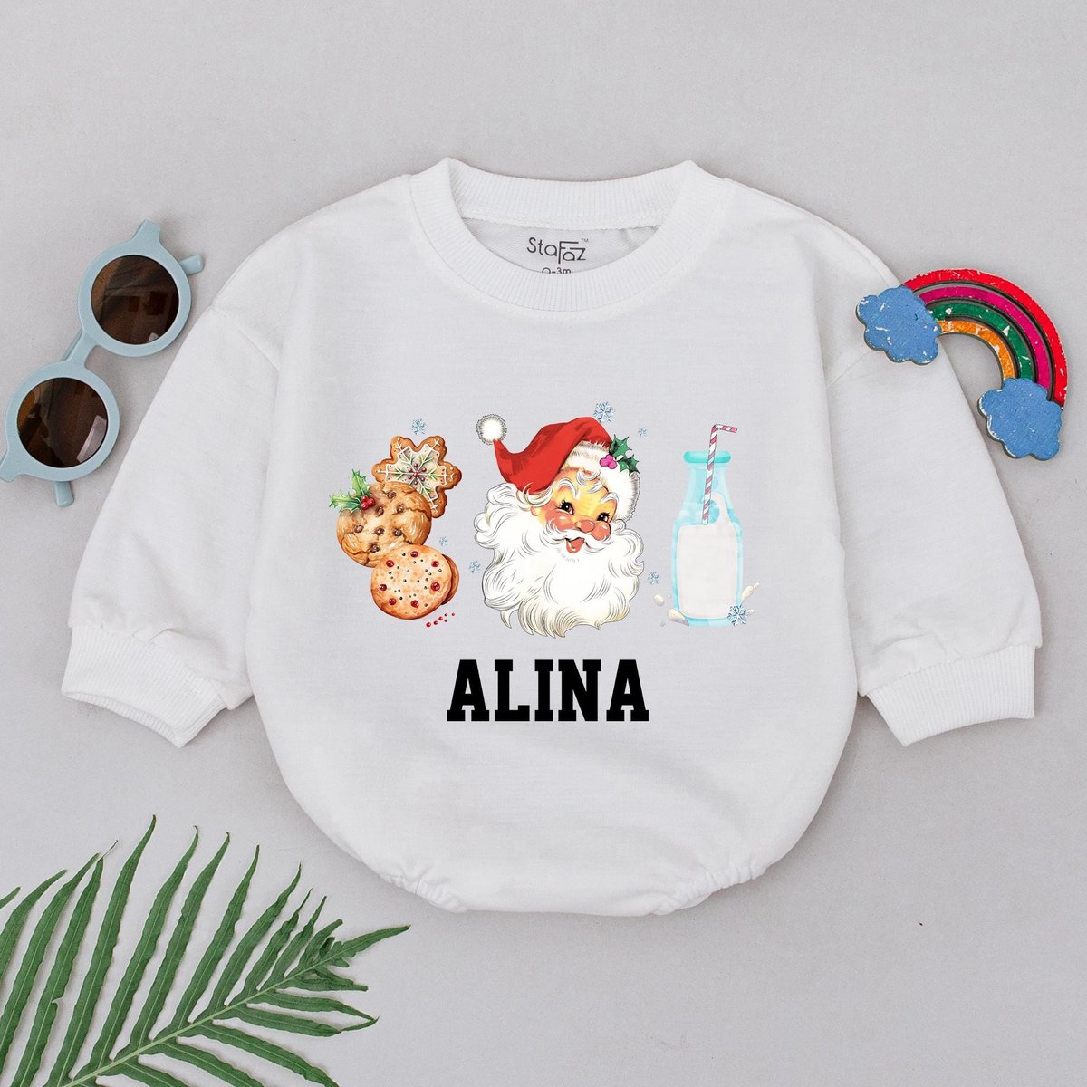 Personalized Name Christmas Romper 1st Christmas Baby Bodysuit Christmas Outfits Santa Milk Cookies