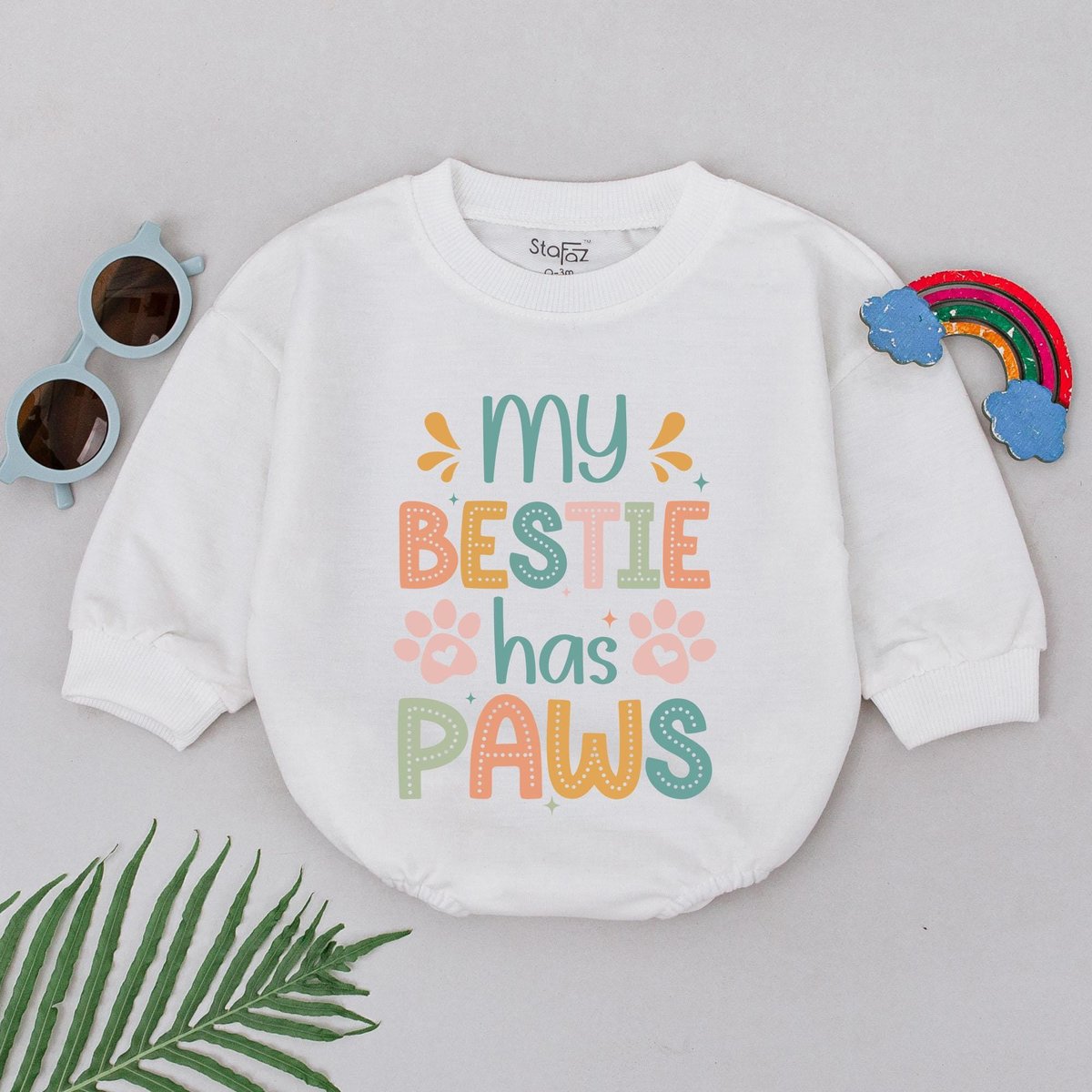 Personalized My Bestie Has Paws Romper Retro Pet Bestie Baby Romper Best Friend Outfits Pet Lover Ba