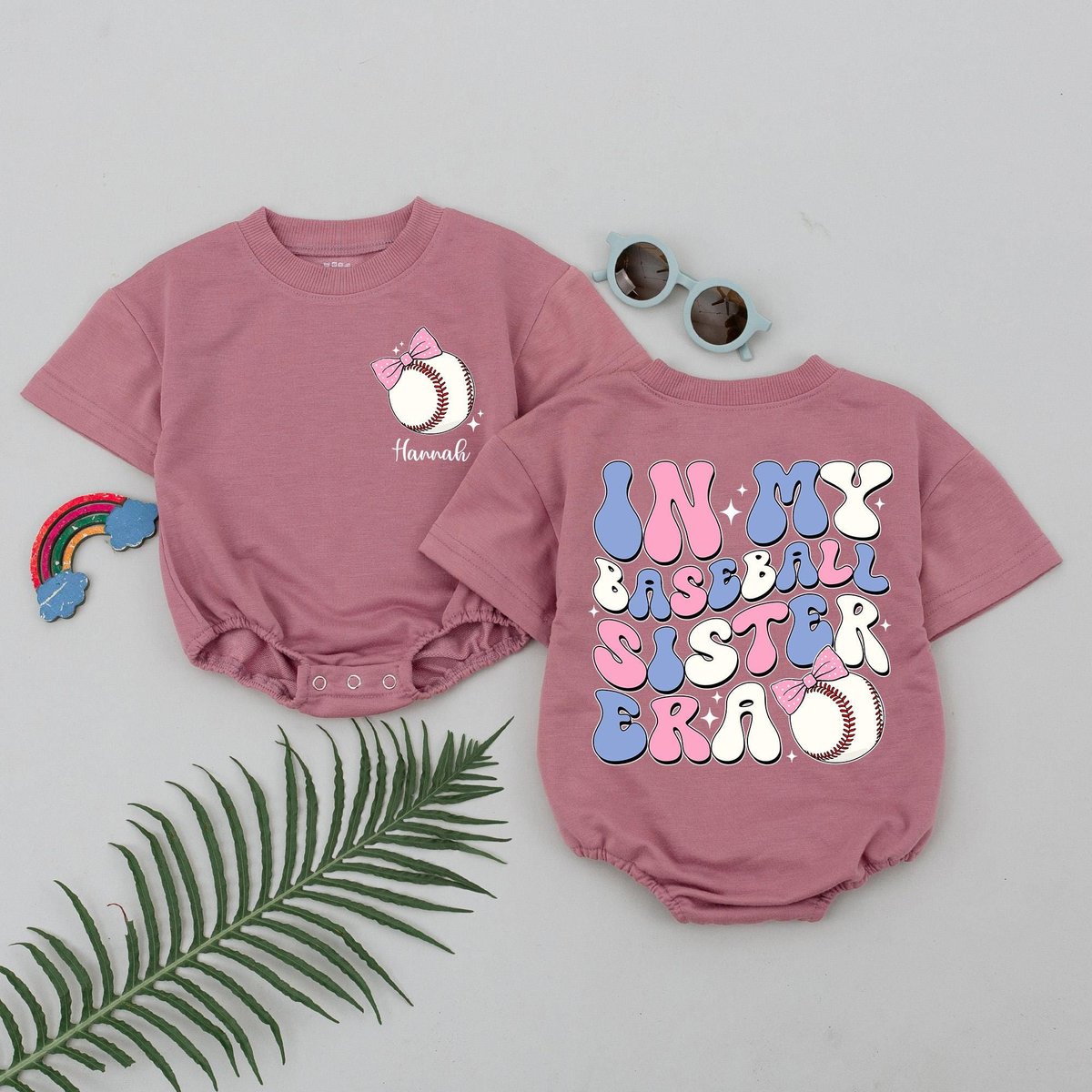 Personalized In My Baseball Sister Era Romper Girls Baseball Baseball Game Day Outfit Little Sister