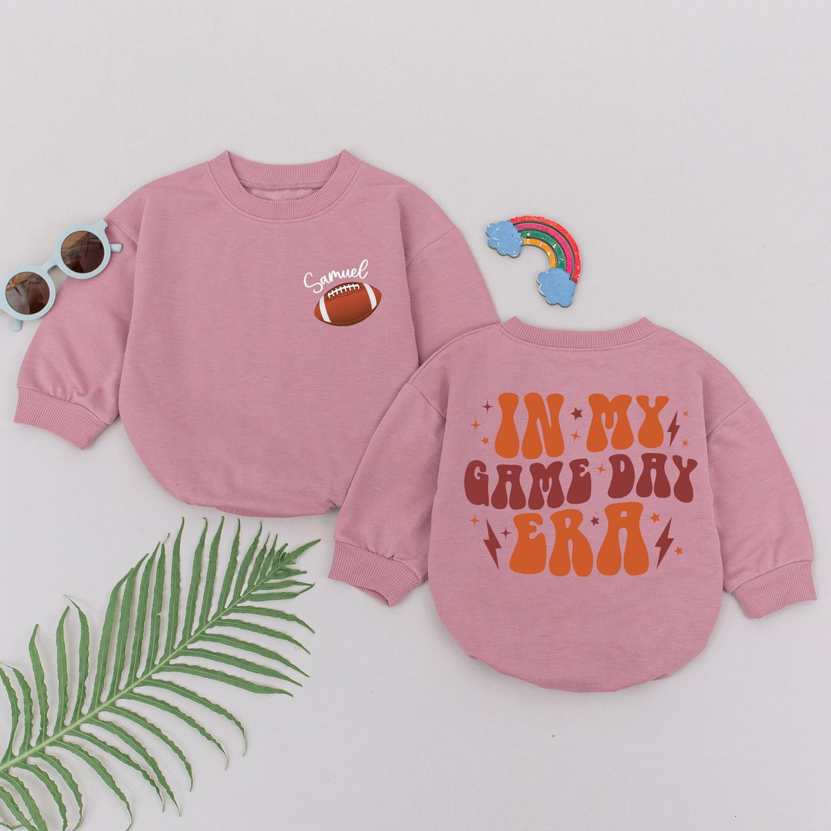 Personalized In My Game Day Era Romper Retro Football Baby Outfit Gameday Season Natural Bubble Baby