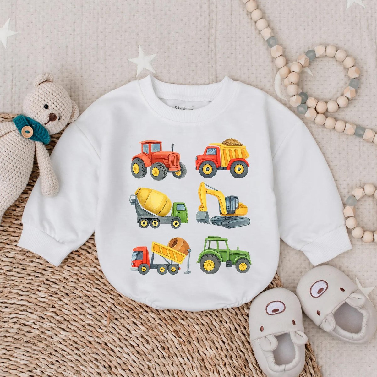 Construction Truck Baby Romper Toddler Boy Bubble Outfit Excavator Oversized Bodysuit Truck Lover B