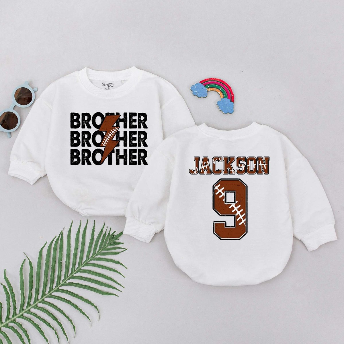 Personalized Football Brother Romper Fall Baby Clothes Football Season Bubble Baby Romper Baby Boy F