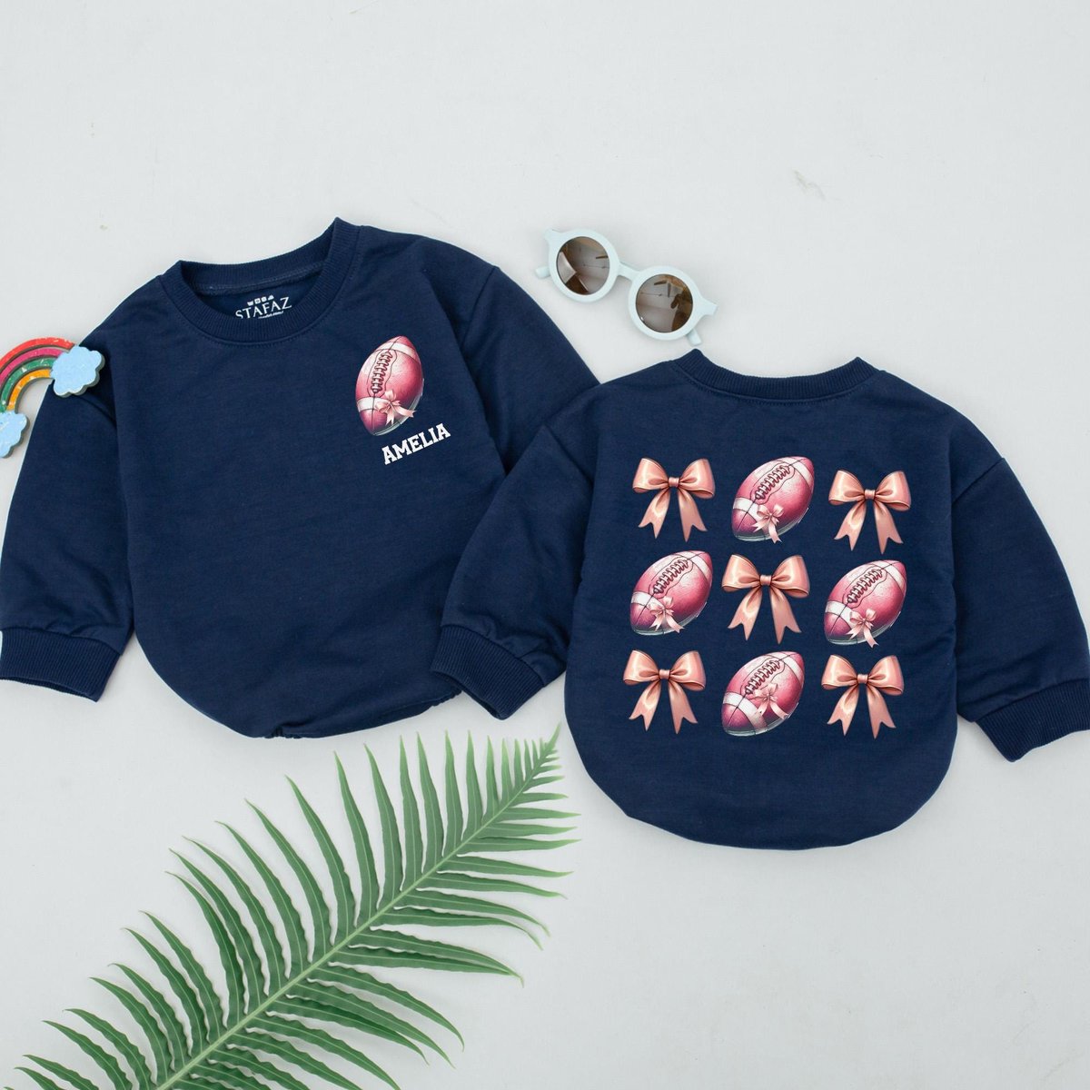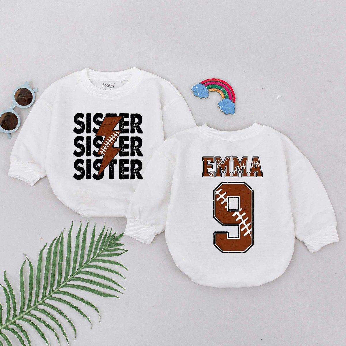 Personalized Football Sister Romper Fall Baby Clothes Football Season Bubble Baby Romper Baby Girl F