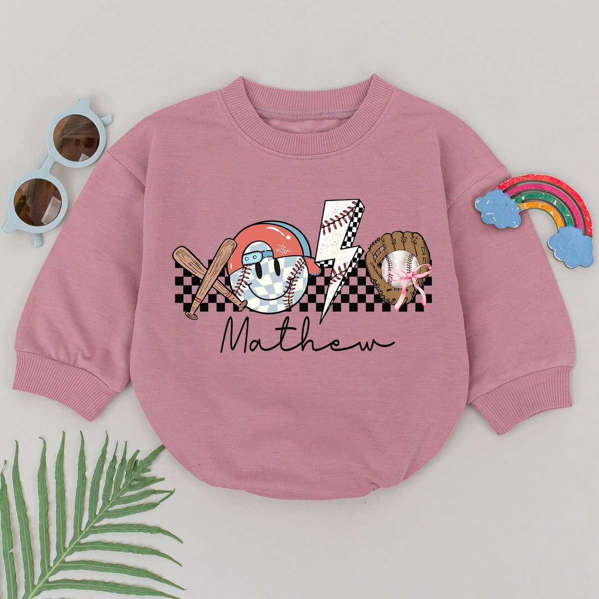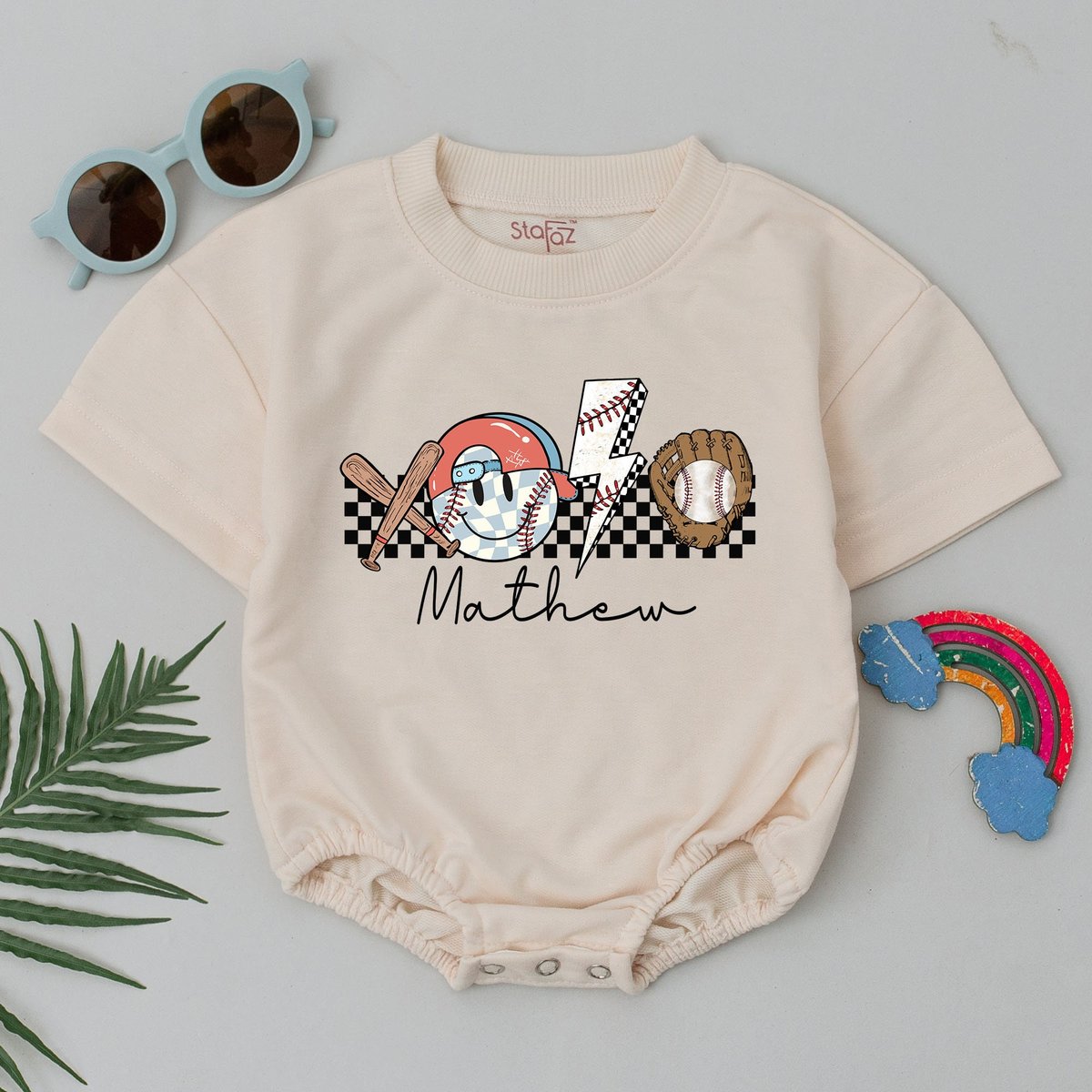 Personalized Game Day Baseball Romper Retro Baseball Baby Outfits Gameday Season Natural Bubble Baby