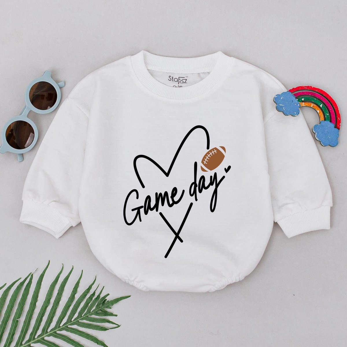 Personalized Game Day Football Romper Retro Football Outfit Gameday Season Natural Bubble Baby Rompe