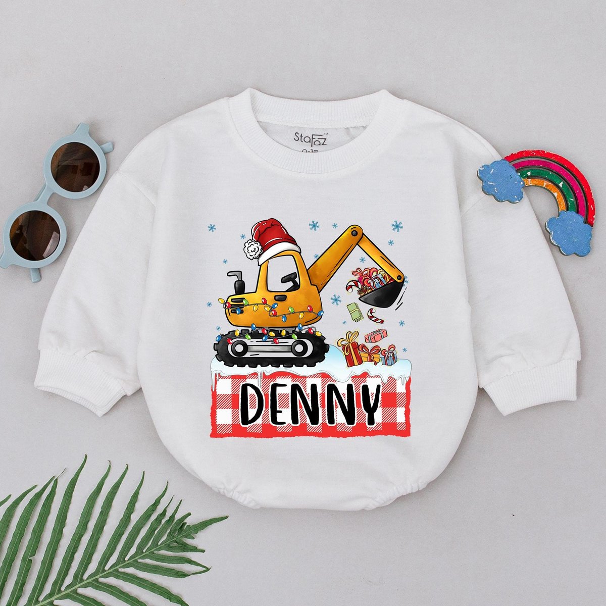 Personalized Christmas Excavator Romper 1st Christmas Baby Romper Baby Shower Gift Christmas Outfits
