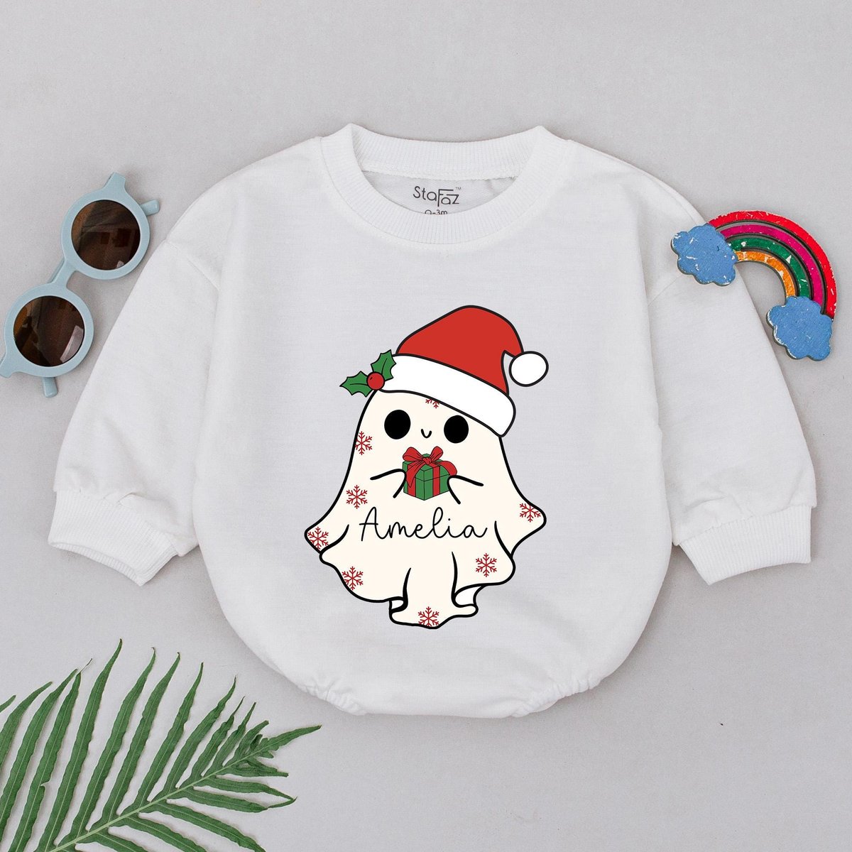 Personalized Christmas Ghost Romper Name Christmas Outfits 1st Christmas Romper New Baby Gift Baby S