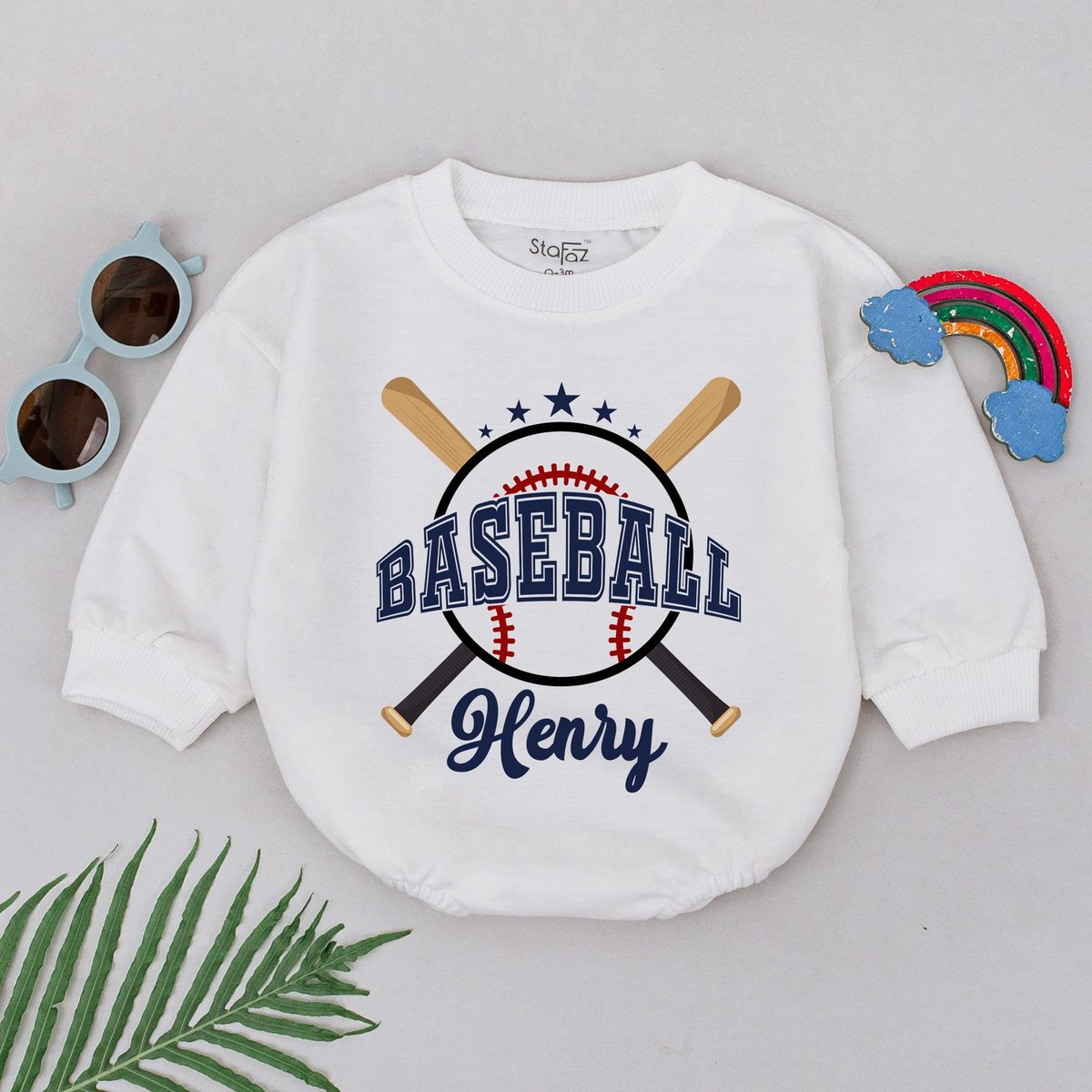 Personalized Baseball Game Day Romper Retro Baseball Baby Outfits Gameday Season Natural Bubble Baby