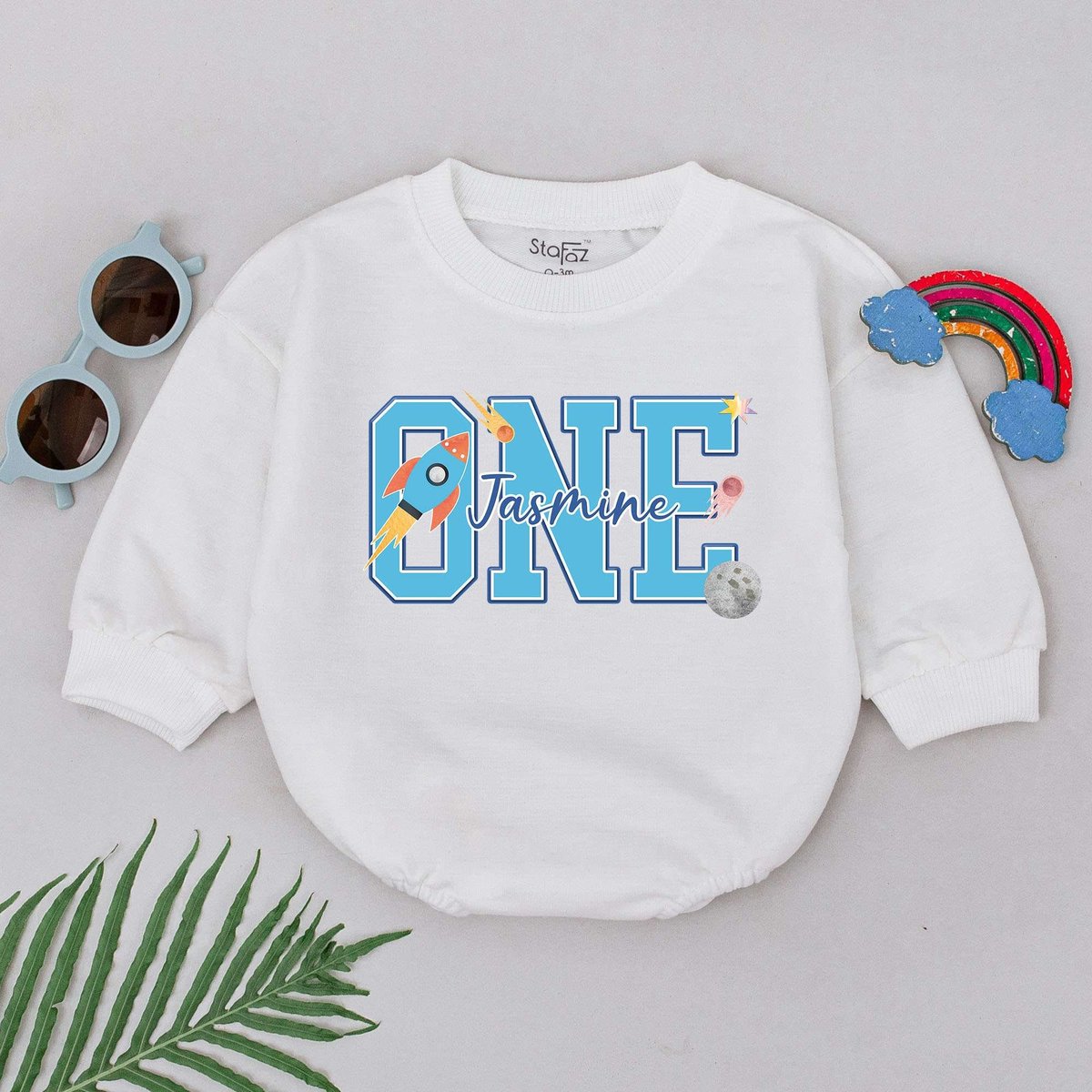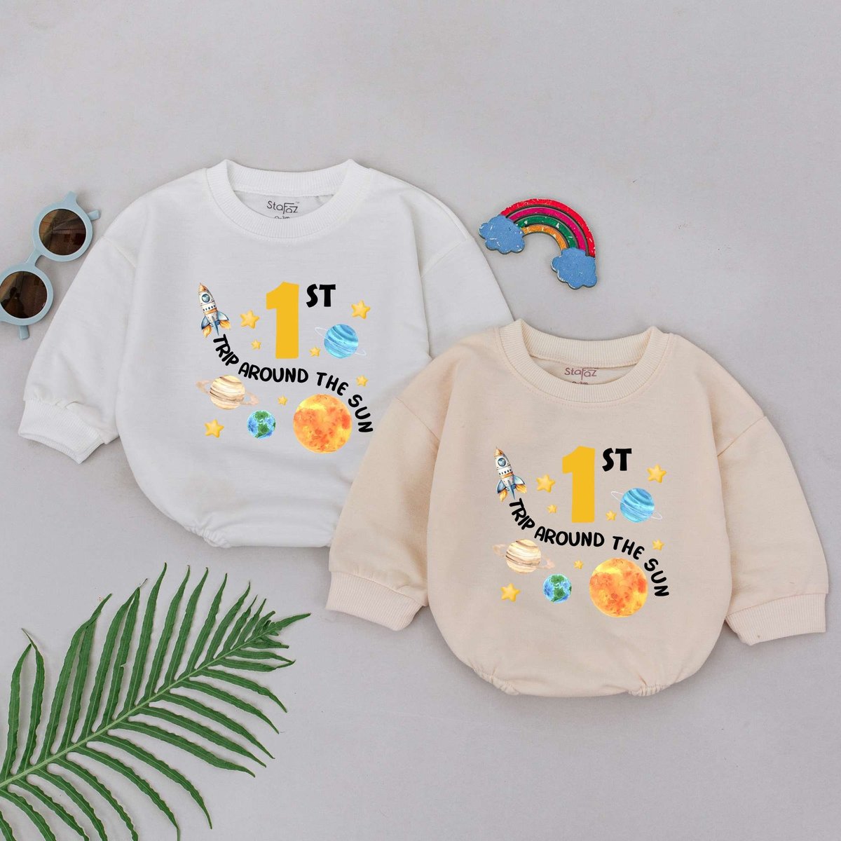First Trip Around the Sun Romper First Birthday Baby Romper Space Birthday Party Natural Newborn Boy
