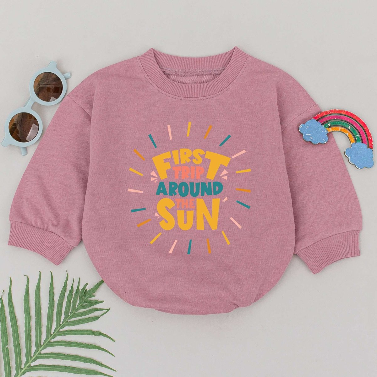 First Trip Around the Sun Romper First Birthday Baby Romper Birthday Theme Party Natural Newborn Boy