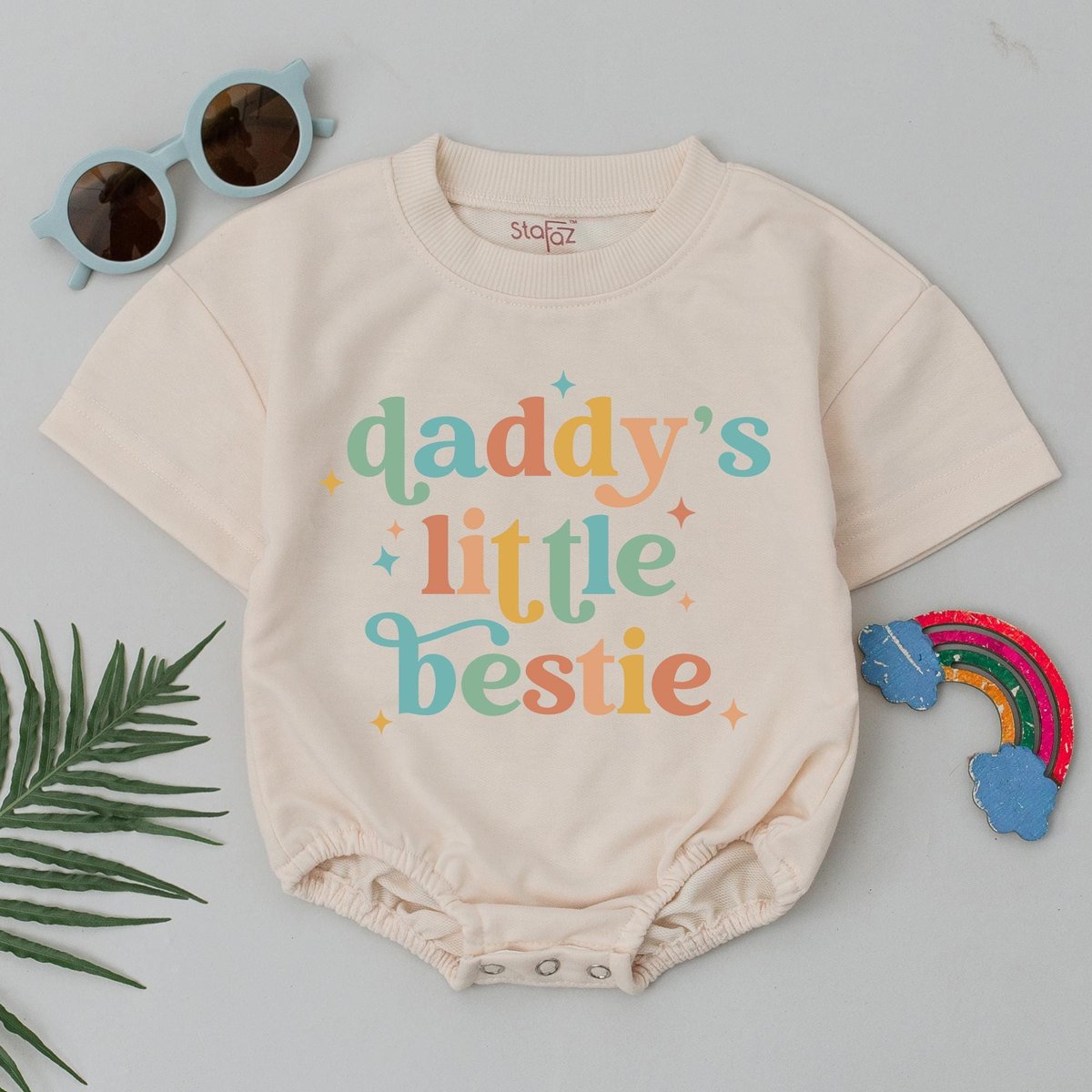 Daddys Little Bestie Romper Funny Baby Girl Outfit First Fathers Day Gift Retro Baby Shower Gift New