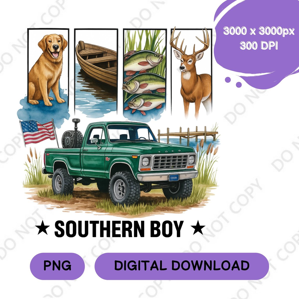 Country Life Southern Boy PNG Rustic Fishing Deer Dog Truck Graphic for Sublimation Craft Projects 434