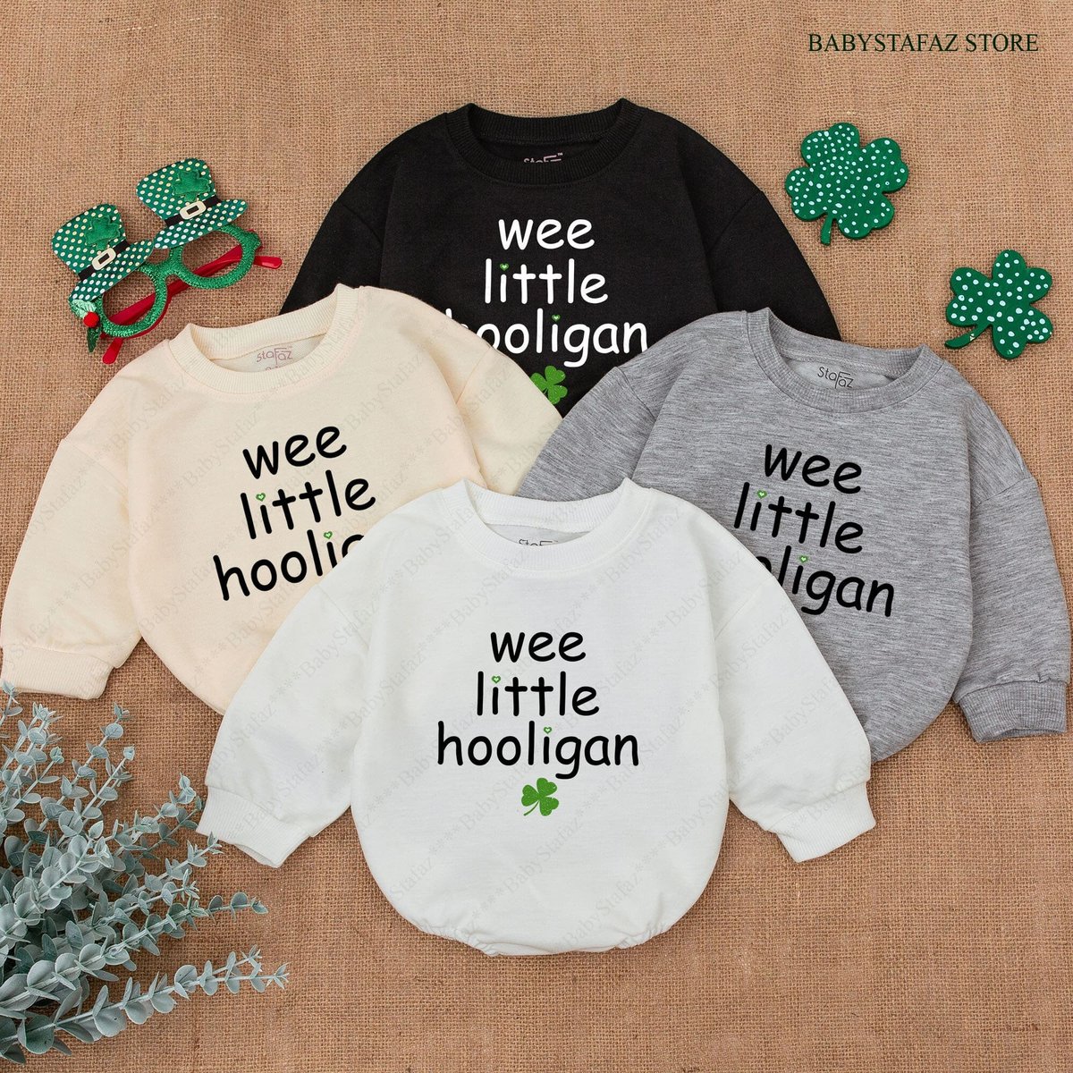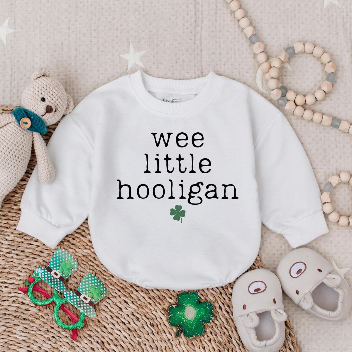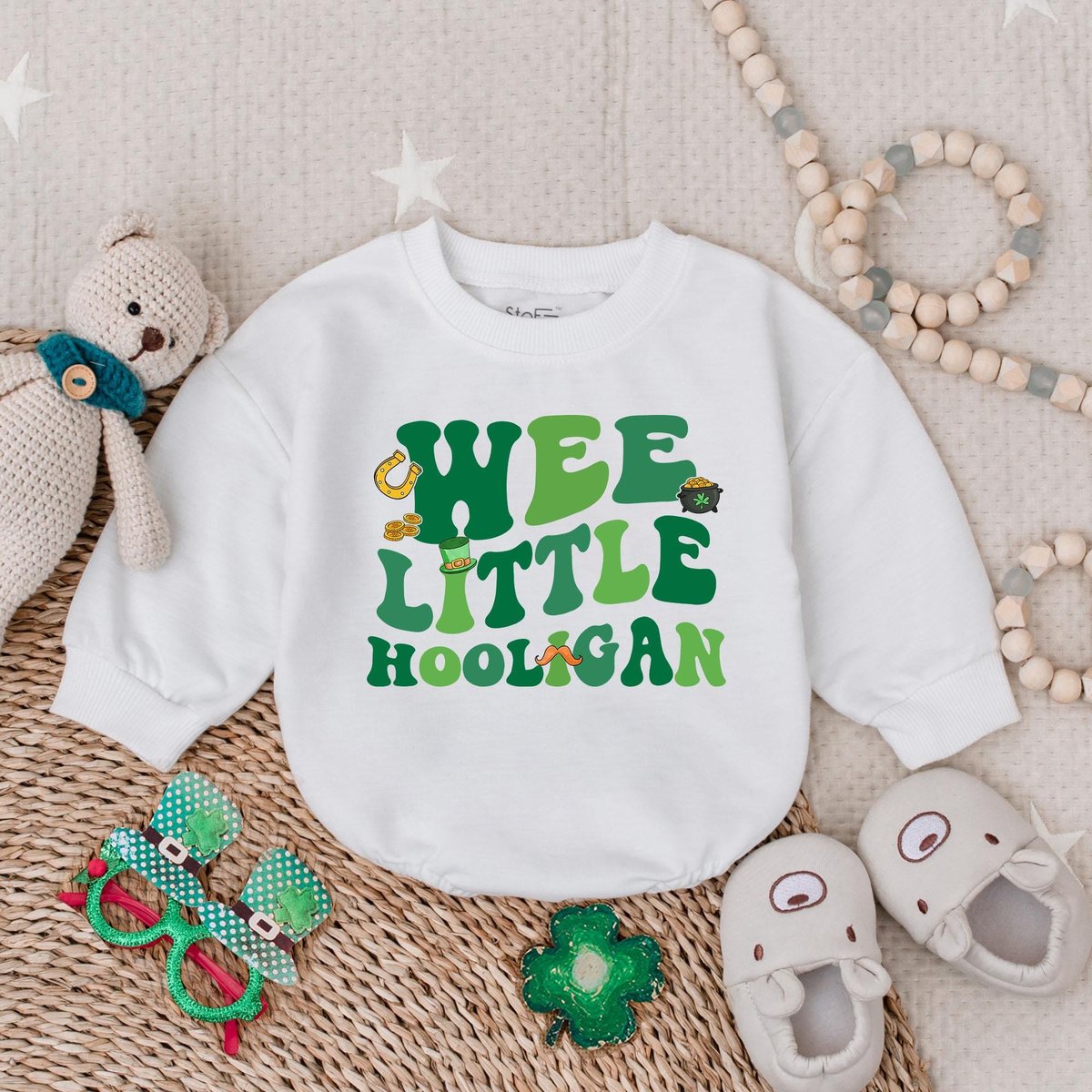 Wee Little Hooligan Patrick’s Day Baby Romper Lucky Shamrock St Patrick’s Day Bodysuit Clover Bab