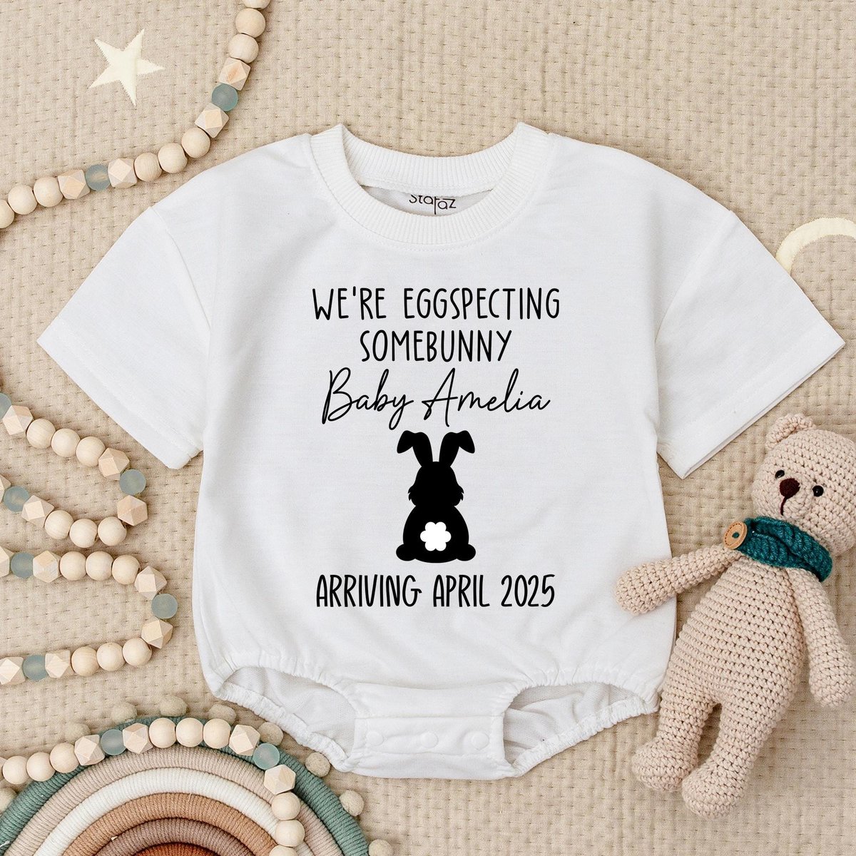Were Eggspecting Somebunny Baby Romper Easter Announcement Baby Romper Spring Custom Name BabyFunny
