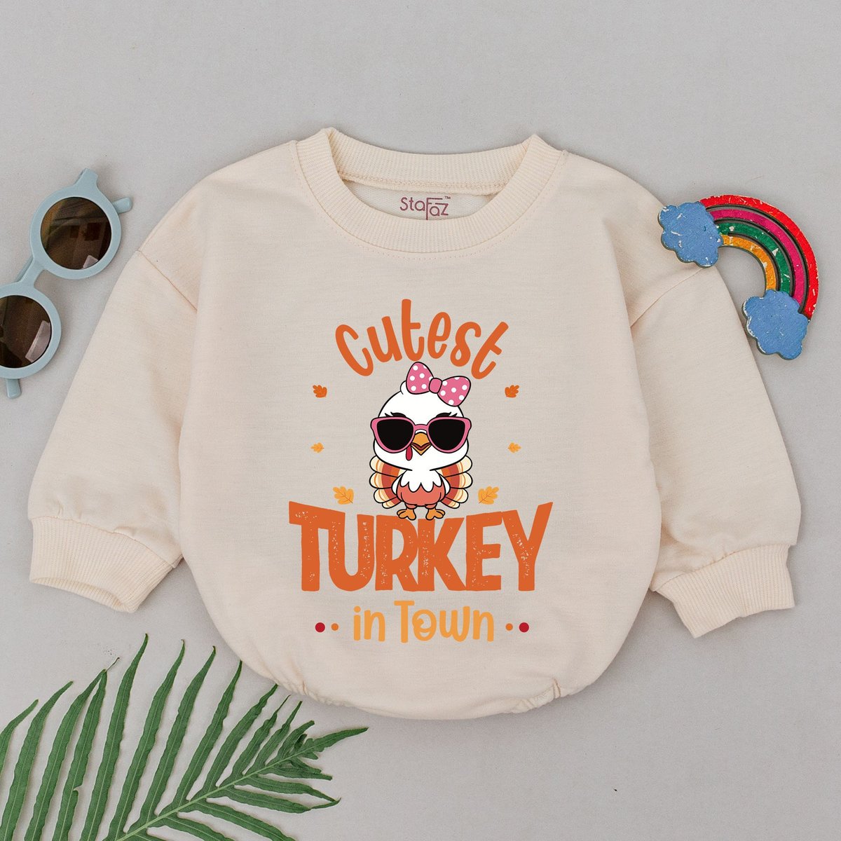 Cutest Turkey In Town Romper Thanksgiving Baby Romper Turkey Thanksgiving Outfit Turkey Day Outfit N