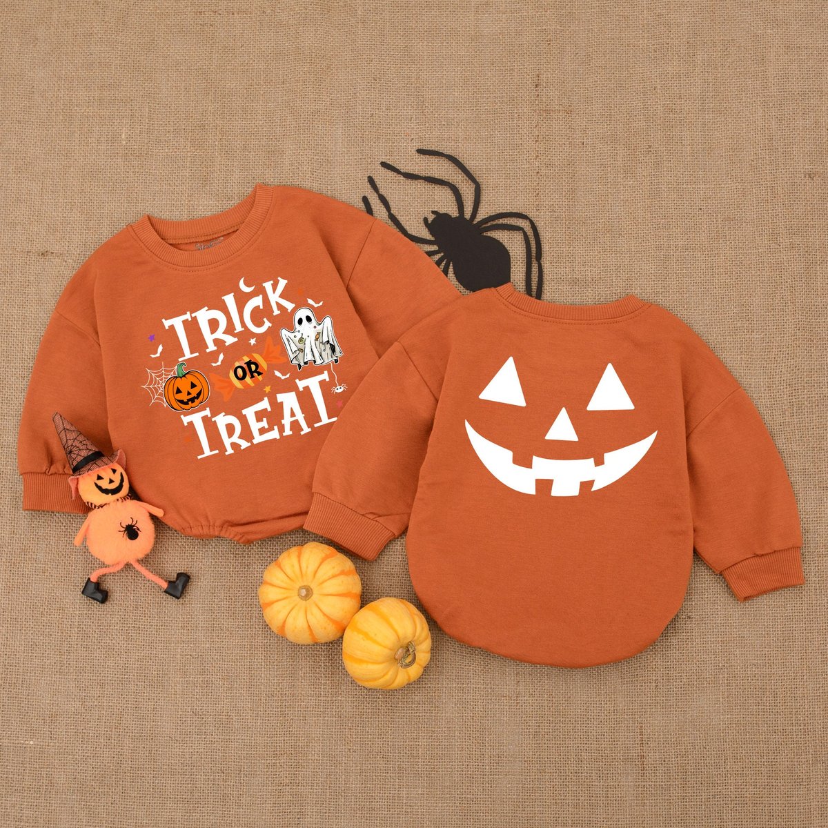 Trick and Treat Halloween Baby Clothes First Halloween Outfit Bubble RomperBaby Shower Gift Pumpkin 174