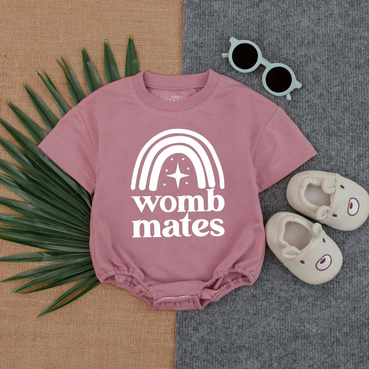 Twin Baby Romper Short Sleeve Bubble Romper Womb Mates Twin Romper Funny Best Friends Twin Rom 183