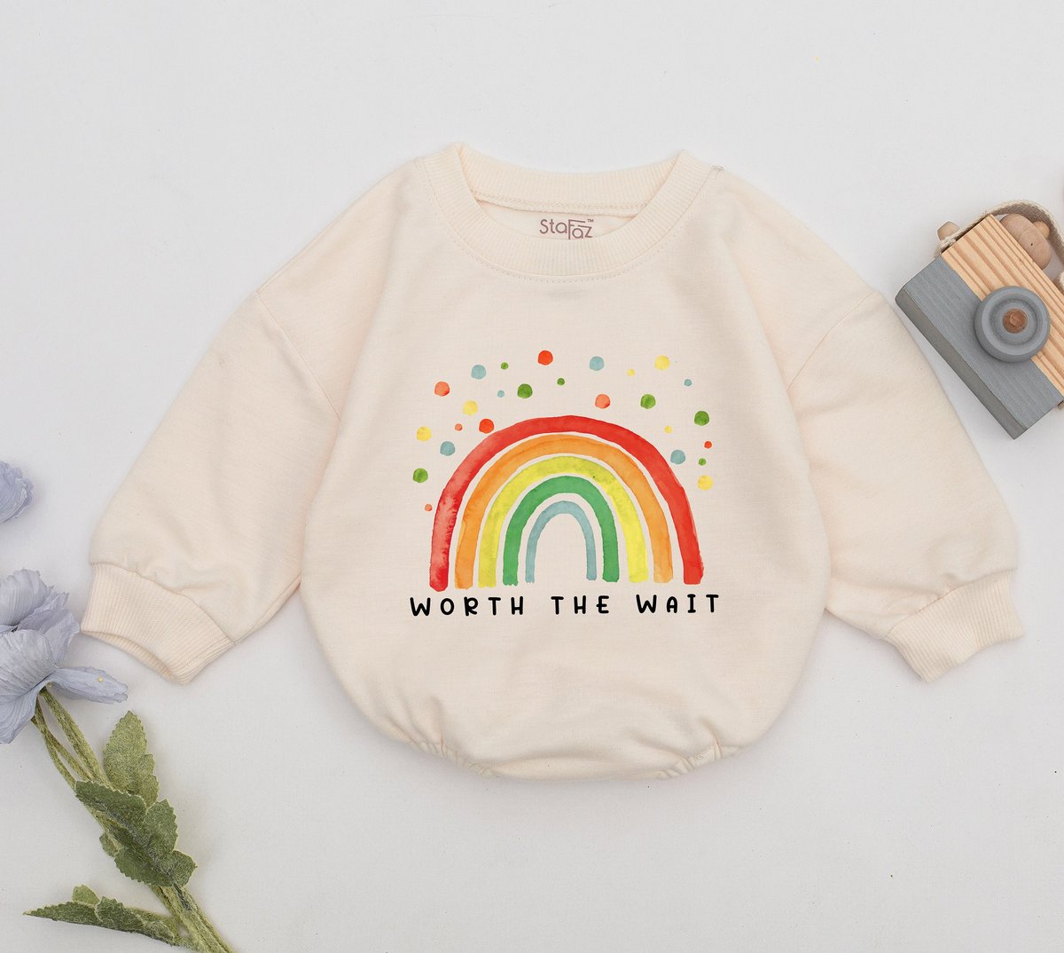 Worth The Wait Rainbow Romper New Baby Gifts Baby Shower Gift IVF Baby Outfit Baby Announcement Infa