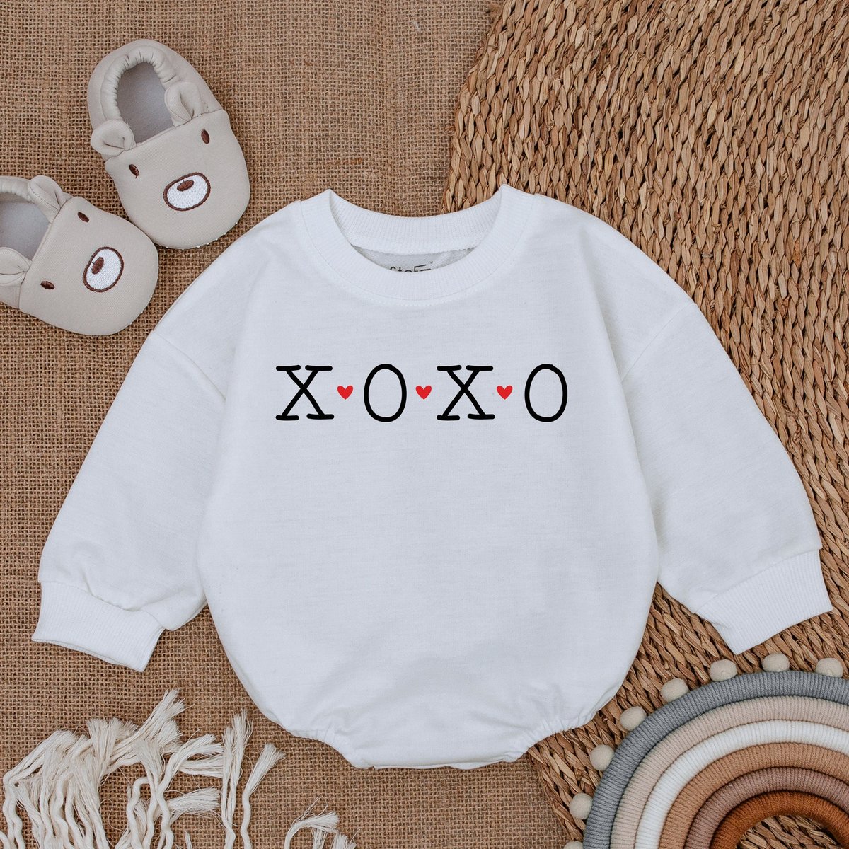 XOXO Valentines Day Baby Outfit Baby Announcement Bubble Romper Baby Clothes Valentine Baby bodysuit