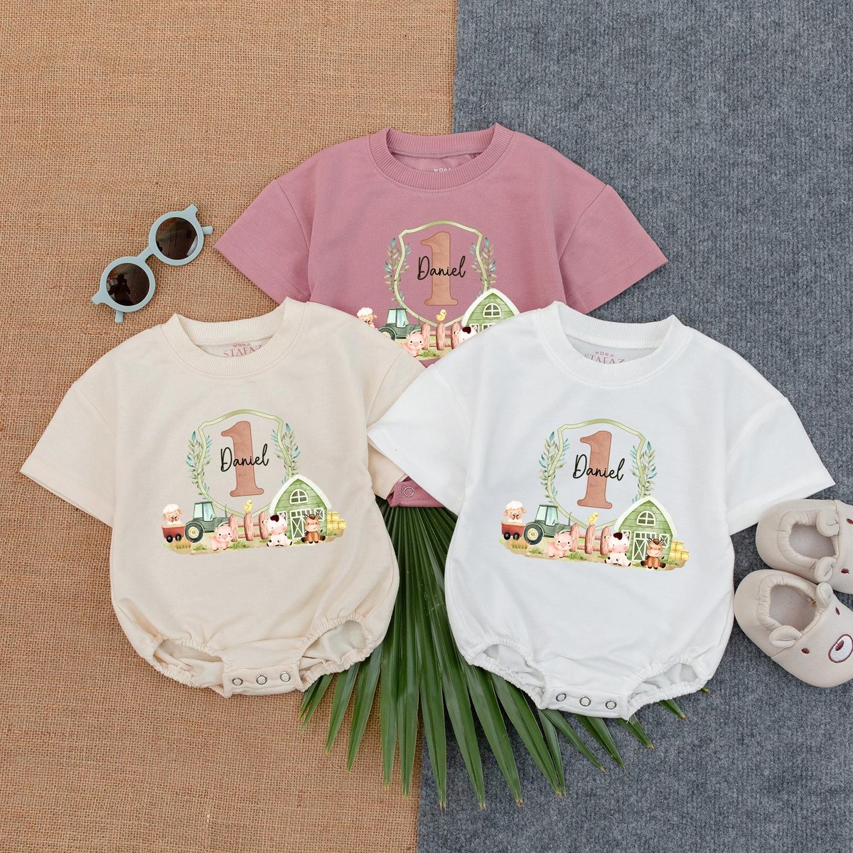 Customized First Birthday Farm Bubble Romper 1st Birthday Outfit Toddler Farm Theme Shirt Infant Clo 434