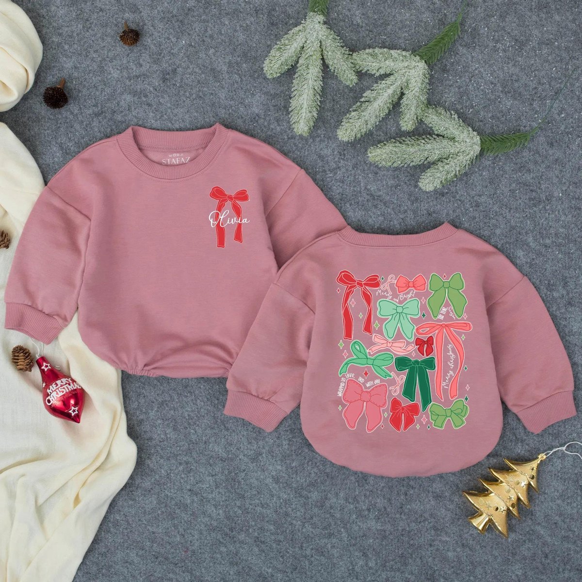 $19.99Customized Girly Christmas Bow Bubble Romper Personalized Holiday Baby Girl Outfit Toddler Xmas Body 434 All of our items are made to order, therefore, all sales are FINAL and exchanges or returns are NOT accepted. >>> Please check your order details and shipping address on your cart carefully before making payments. Once an order has […]
