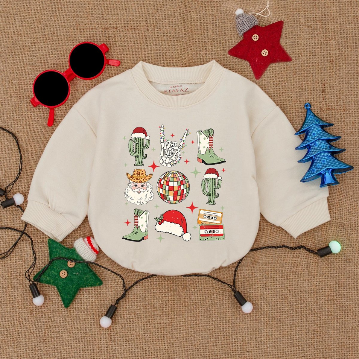 Cowboy Western Christmas Romper Sweatshirt Howdy Santa Baby Bodysuit Cute Western Christmas Baby Out 183