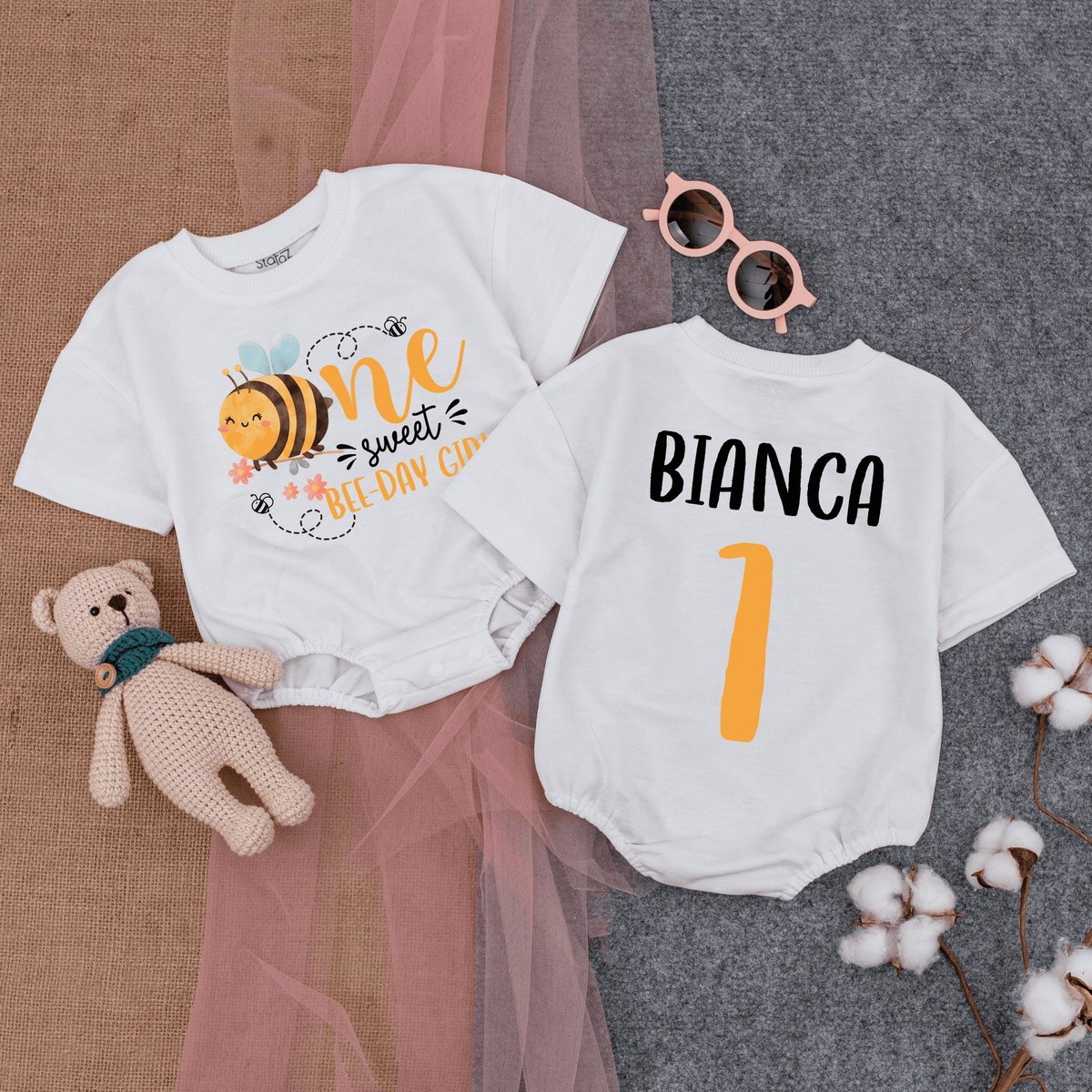 Custom One Sweet Bee day Girl Baby Romper First Bee Day 1st Birthday Outfit First Bee Day Shirt Cute 170