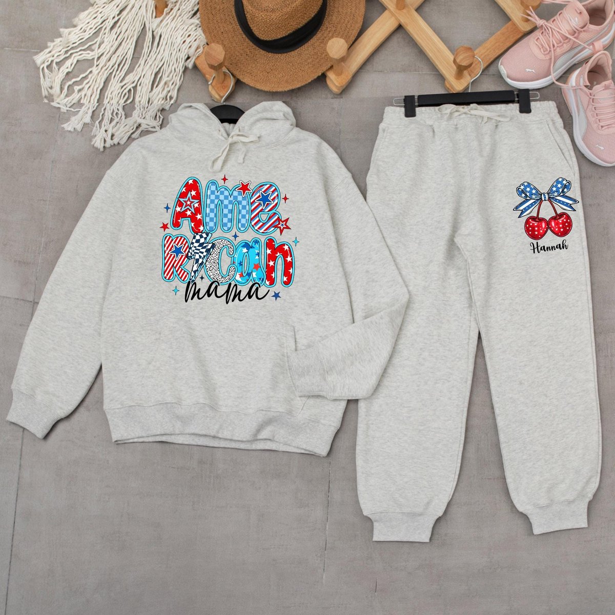 Custom American Mama Sweatshirt and Sweatpants Sweatsuit Gift for Mom Personalized 4th of July Mom U