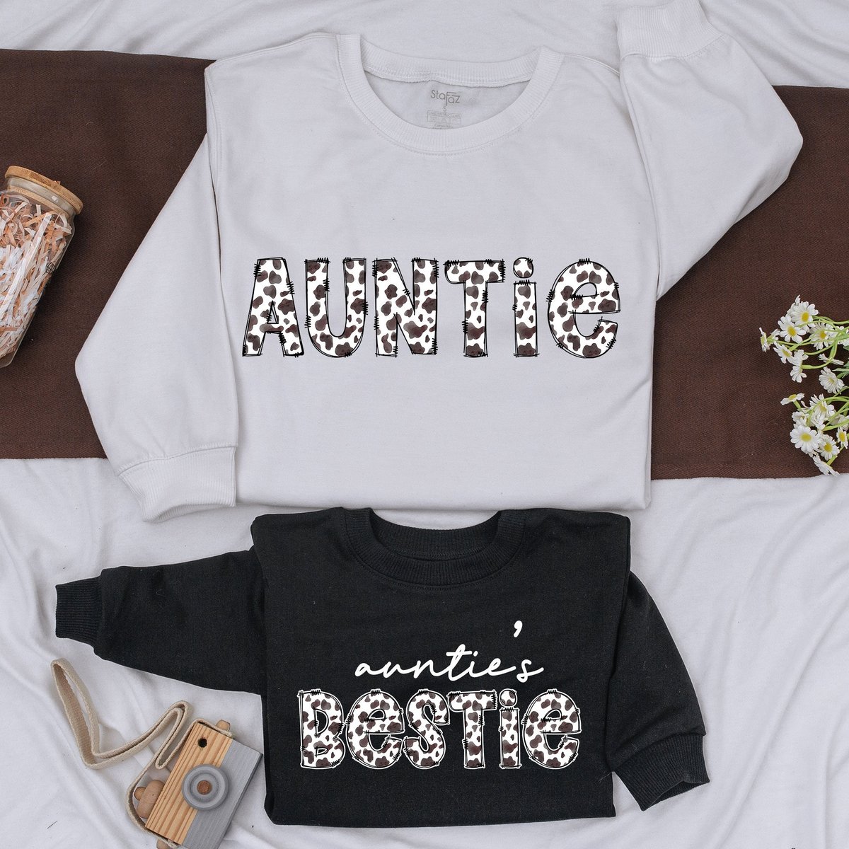Custom Auntie And Aunties Bestie Sweatshirt Aunt Matching Family Shirt Leopard Kid Sweatshirt Fall S 158