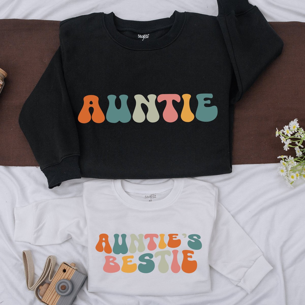 Custom Auntie And Aunties Bestie Sweatshirt Aunt Matching Family Shirt Fall Season OutFit Baby Girl 160