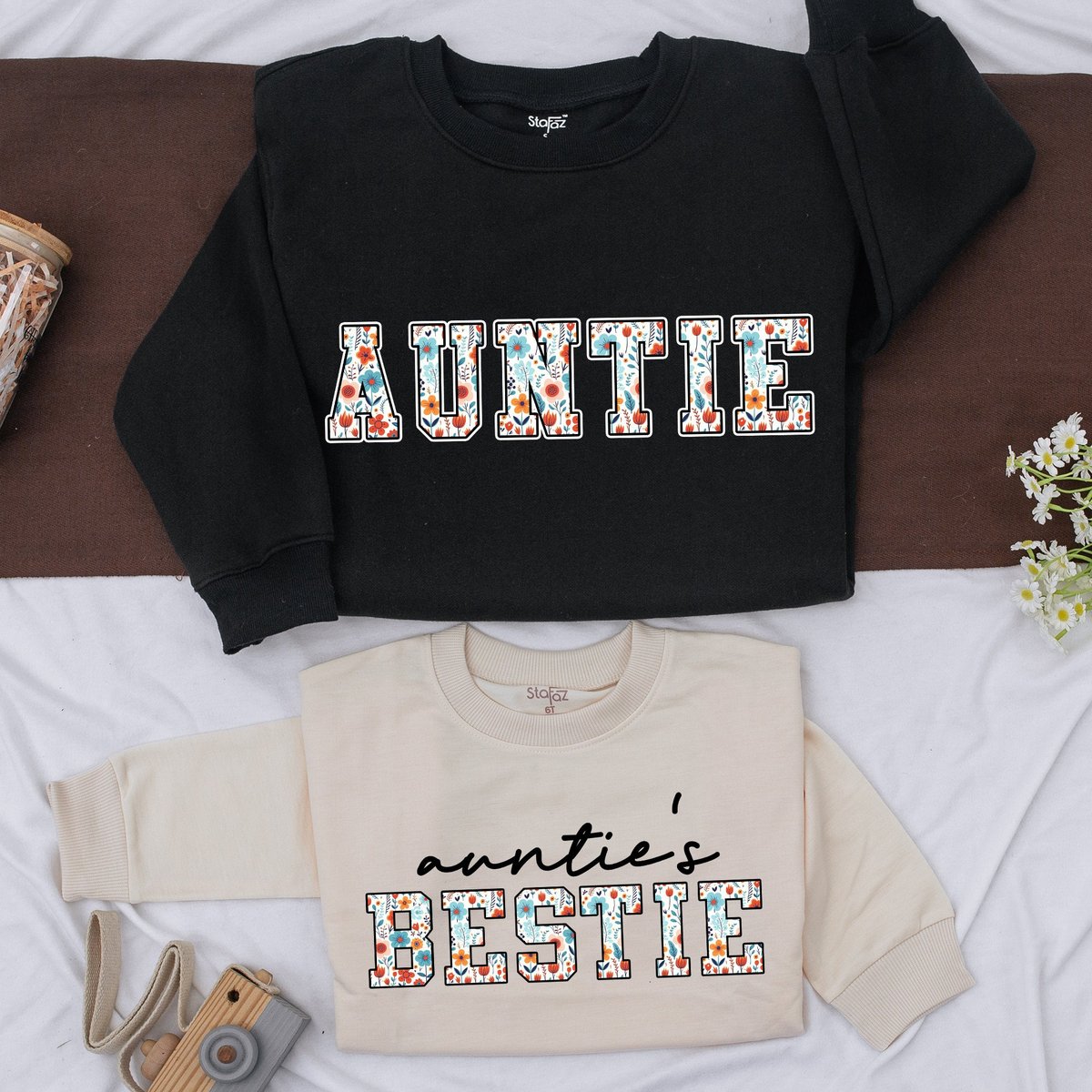 Custom Auntie And Auntie’s Bestie Sweatshirt Aunt and Nephew Shirts baby romper Gift for Her Floral 164