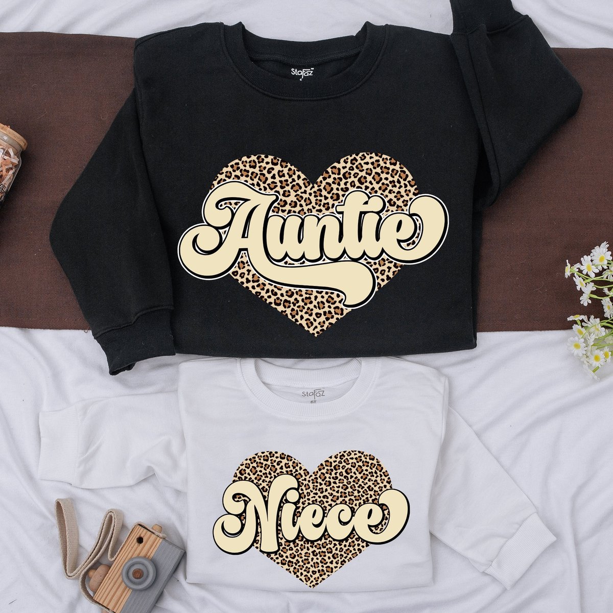 Custom Auntie And Niece Leopard Sweatshirt Aunt and Nephew Shirts baby romper Gift for Her Floral Sw 163