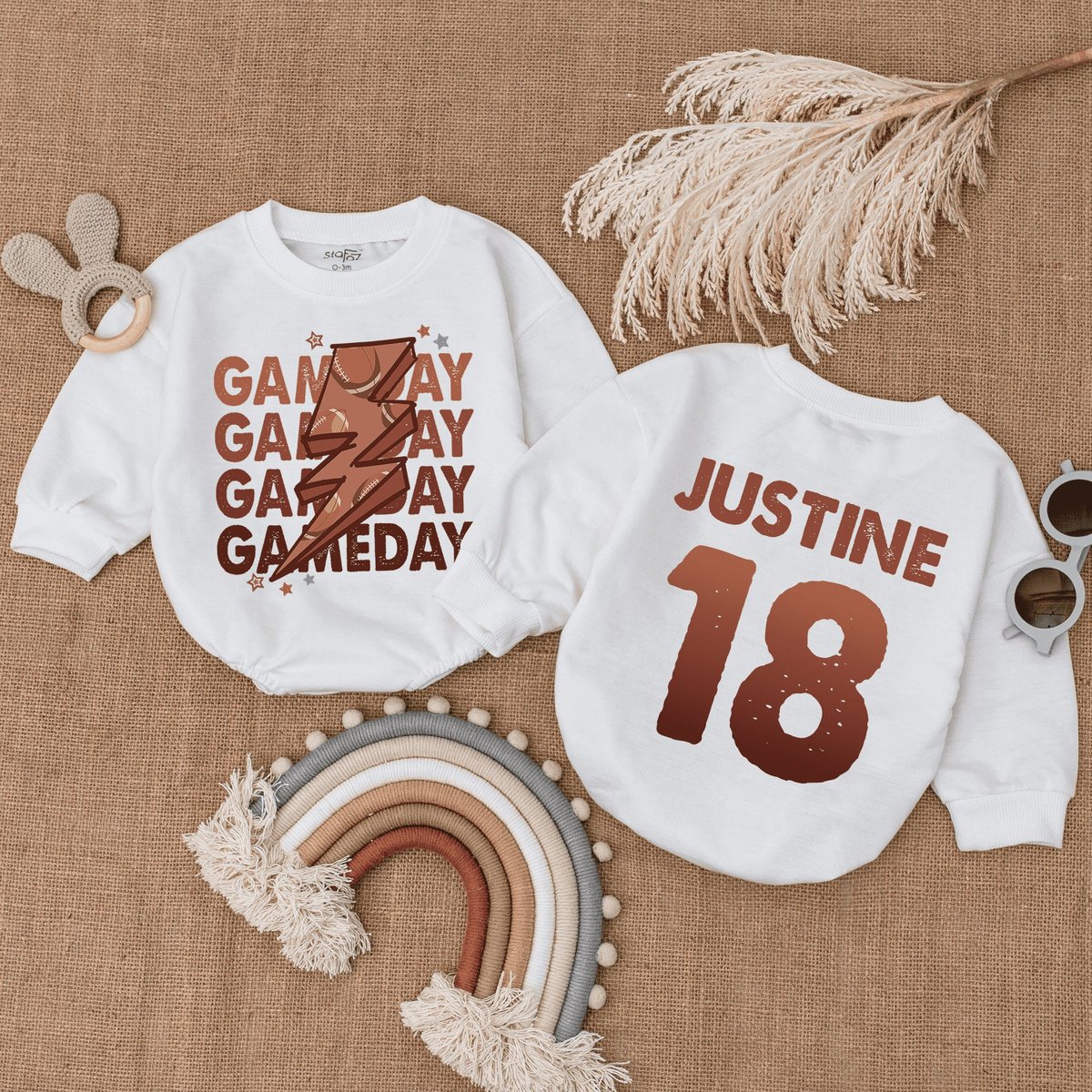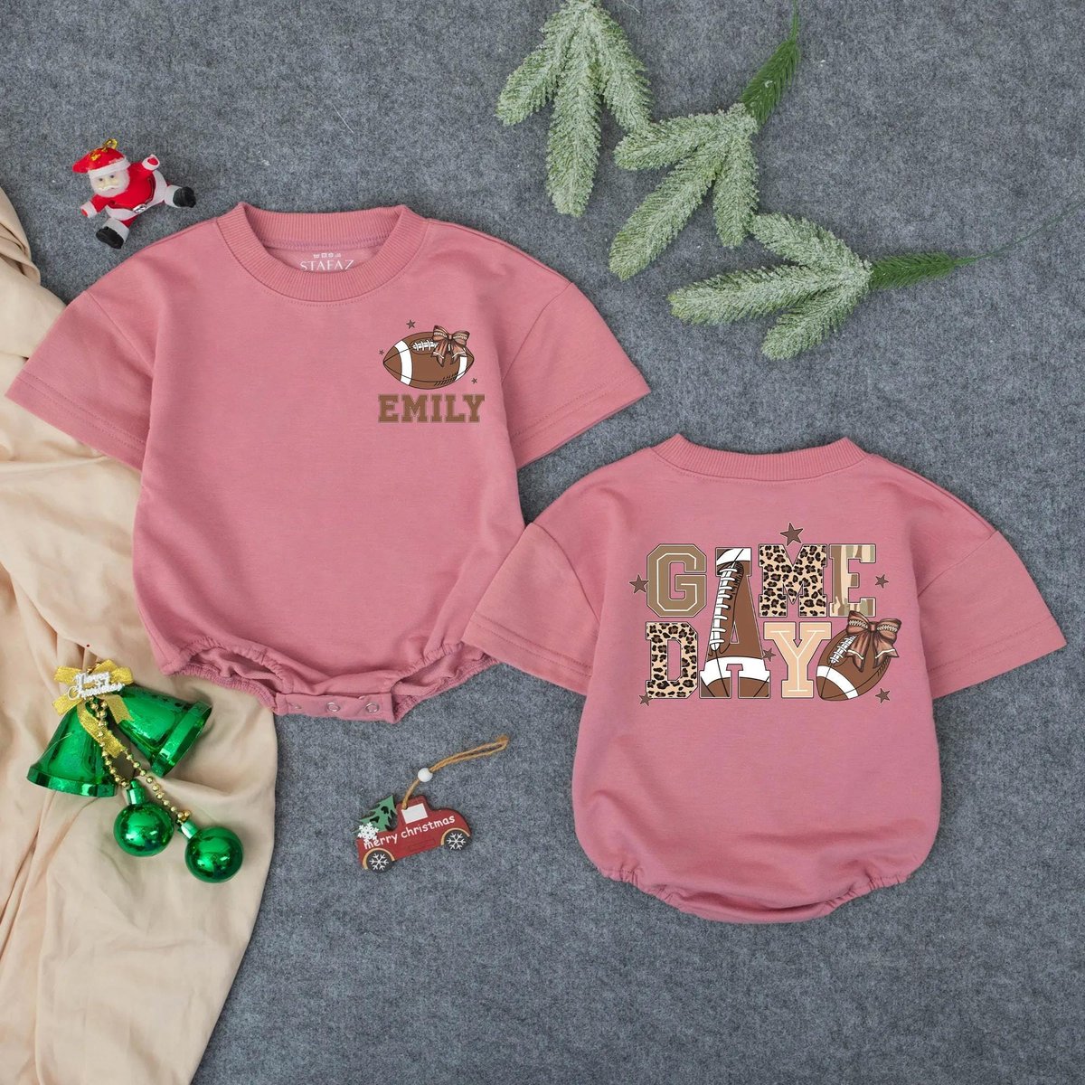 Custom Name Game Day Baby Romper Football Season Game Day Vibes Sweatshirt Football Game Day Romper 167