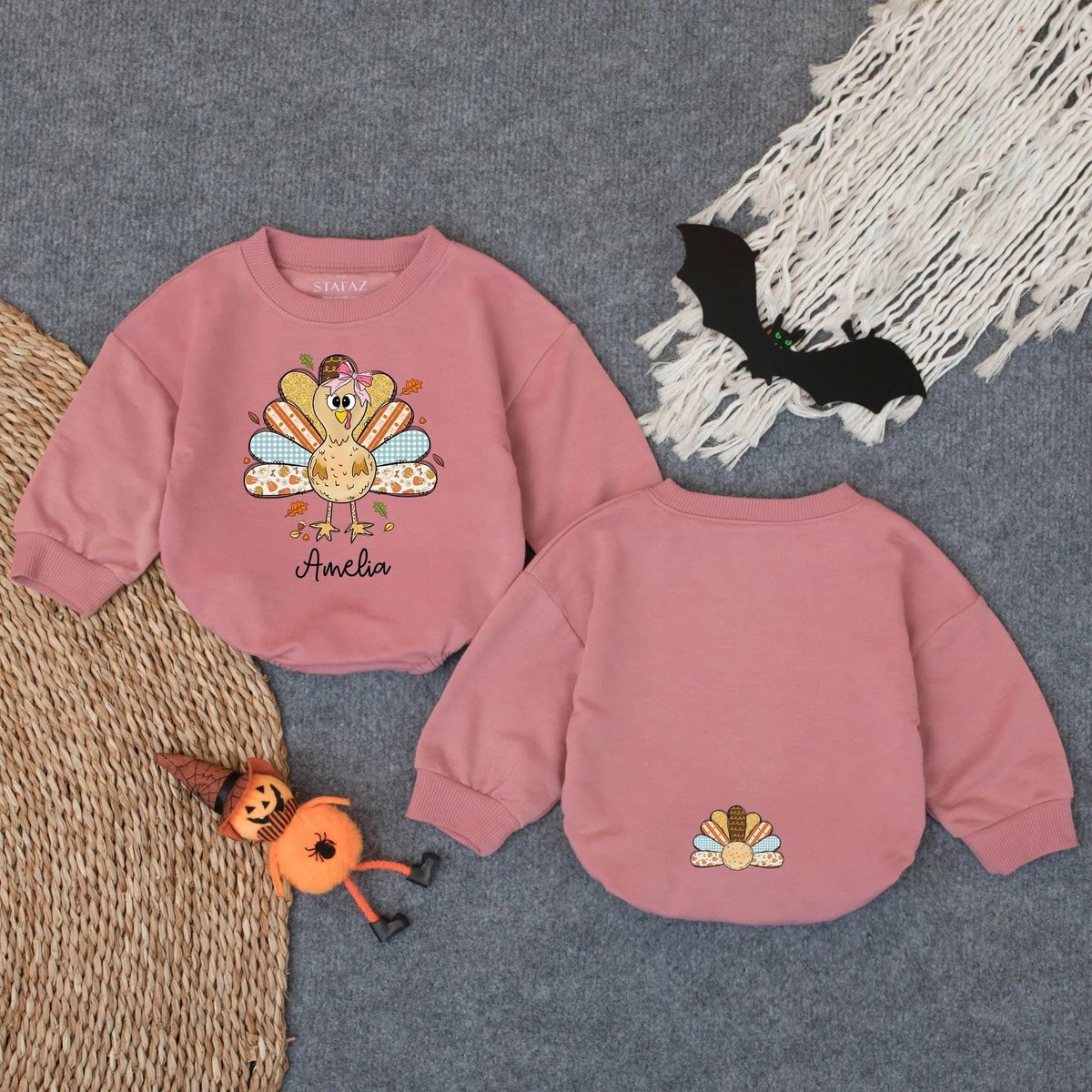 Custom Little Turkey Baby Bubble Romper Personalized First Thanksgiving Outfit Infant Fall Bodysuit 434